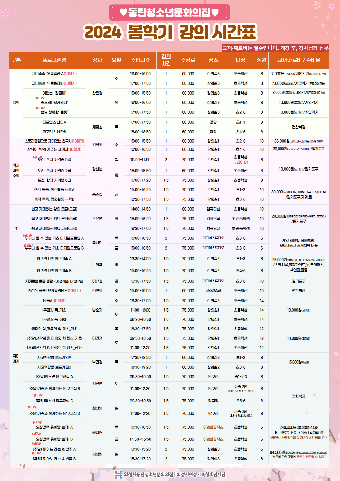 동탄청소년문화의집에서 2024 봄학기 교육문화프로그램 수강생을 모집합니다.