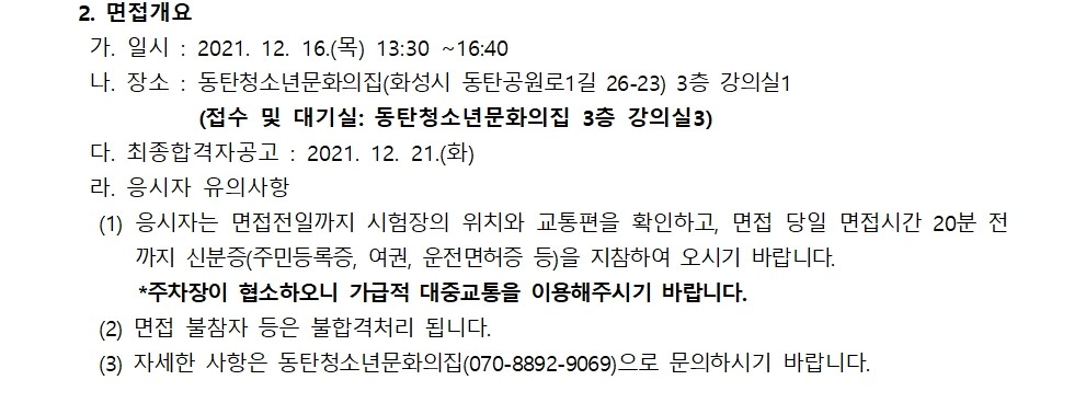 동탄청소년문화의집 교육문화프로그램 서류합격자 및 면접시행 공고001.jpg동탄청소년문화의집 교육문화프로그램 서류합격자 및 면접시행 공고002.jpg