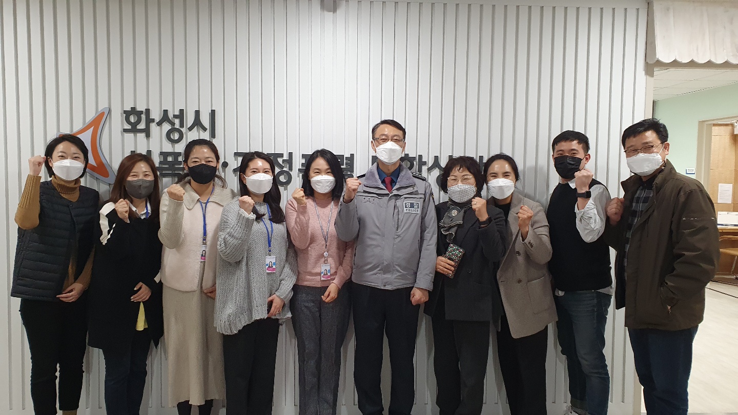 -일자 : 22. 01. 21.(금) -대상 : 화성동탄경찰서 박진성 서장, 여성청소년과장, APO / 총4명) -내용 : 화성시성폭력·가정폭력통합상담소 기관방문 |