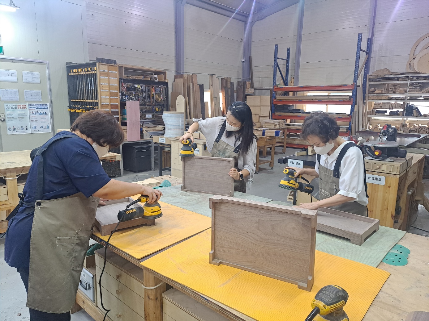 2. 장 소: 이음목공소 3. 대 상: 화성시성폭력·가정폭력통합상담소 소장님 외 6명 4. 내 용: 원목트레이 만들기, 도마만들기 |