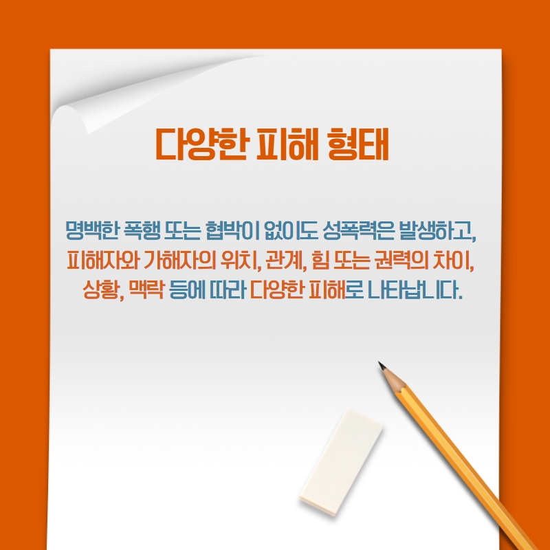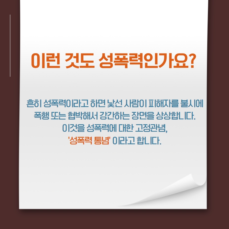자료마당 상세 [카드뉴스] 성폭력, Q&A (1) 이런 것도 성폭력인가요? 등록일 2022.05.20 조회수 841 첨부파일 파일 아이콘성폭력Q&A(1)_1.jpg (73.29KB)다운로드 아이콘 파일 아이콘성폭력Q&A(1)_2.jpg (157.98KB)다운로드 아이콘 파일 아이콘성폭력Q&A(1)_3.jpg (166.39KB)다운로드 아이콘 파일 아이콘성폭력Q&A(1)_4.jpg (148.93KB)다운로드 아이콘 파일 아이콘성폭력Q&A(1)_5.jpg (159.45KB)다운로드 아이콘 파일 아이콘성폭력Q&A(1)_6.jpg (128.22KB)다운로드 아이콘 목록보기