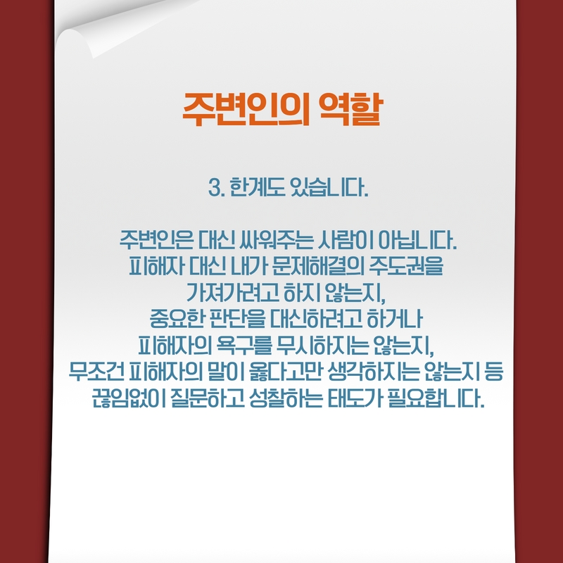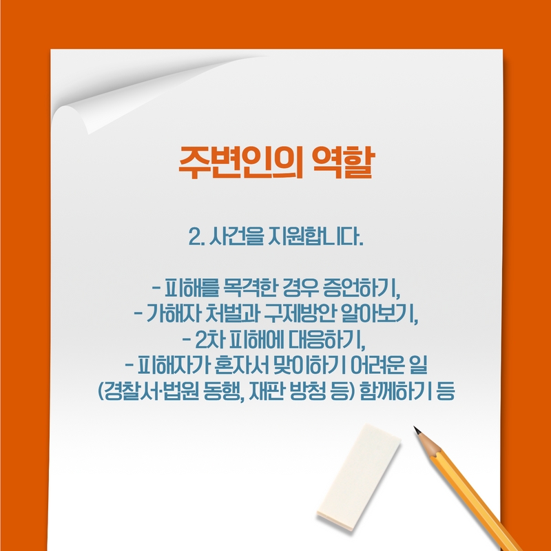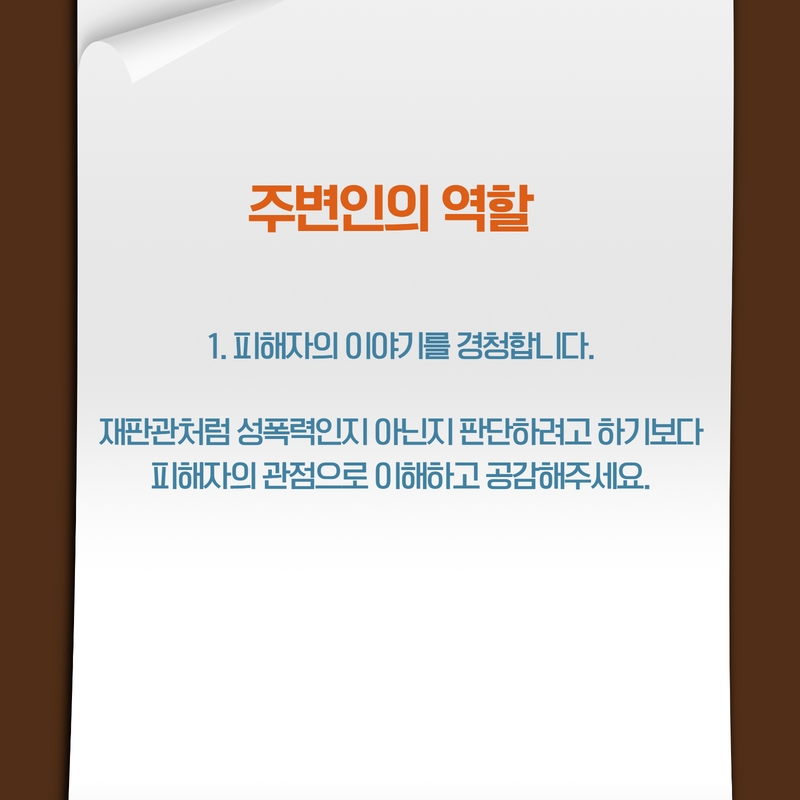 자료마당 상세 [카드뉴스] 성폭력, Q&A (2) 지인이 피해자라면 어떻게 해야하나요? 등록일 2022.08.05 조회수 765 첨부파일 파일 아이콘카드뉴스1.jpg (90.79KB)다운로드 아이콘 파일 아이콘카드뉴스2.jpg (203.03KB)다운로드 아이콘 파일 아이콘카드뉴스3.jpg (210.78KB)다운로드 아이콘 파일 아이콘카드뉴스4.jpg (151.72KB)다운로드 아이콘 파일 아이콘카드뉴스5.jpg (198.02KB)다운로드 아이콘 파일 아이콘카드뉴스6.jpg (218.56KB)다운로드 아이콘 파일 아이콘카드뉴스7.jpg (174.42KB)다운로드 아이콘 목록보기