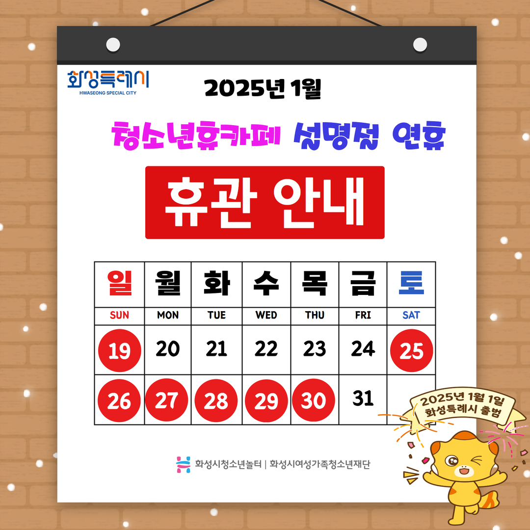 2025년 화성특례시 청소년휴카페 설명절 연휴 휴관 안내