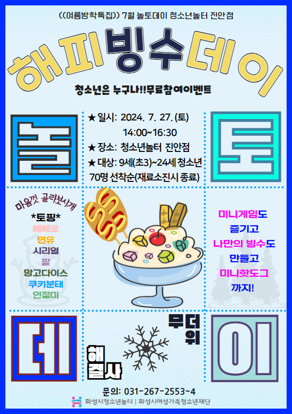 제목 [청소년놀터진안점]7월 놀토데이 '해피빙수데이'