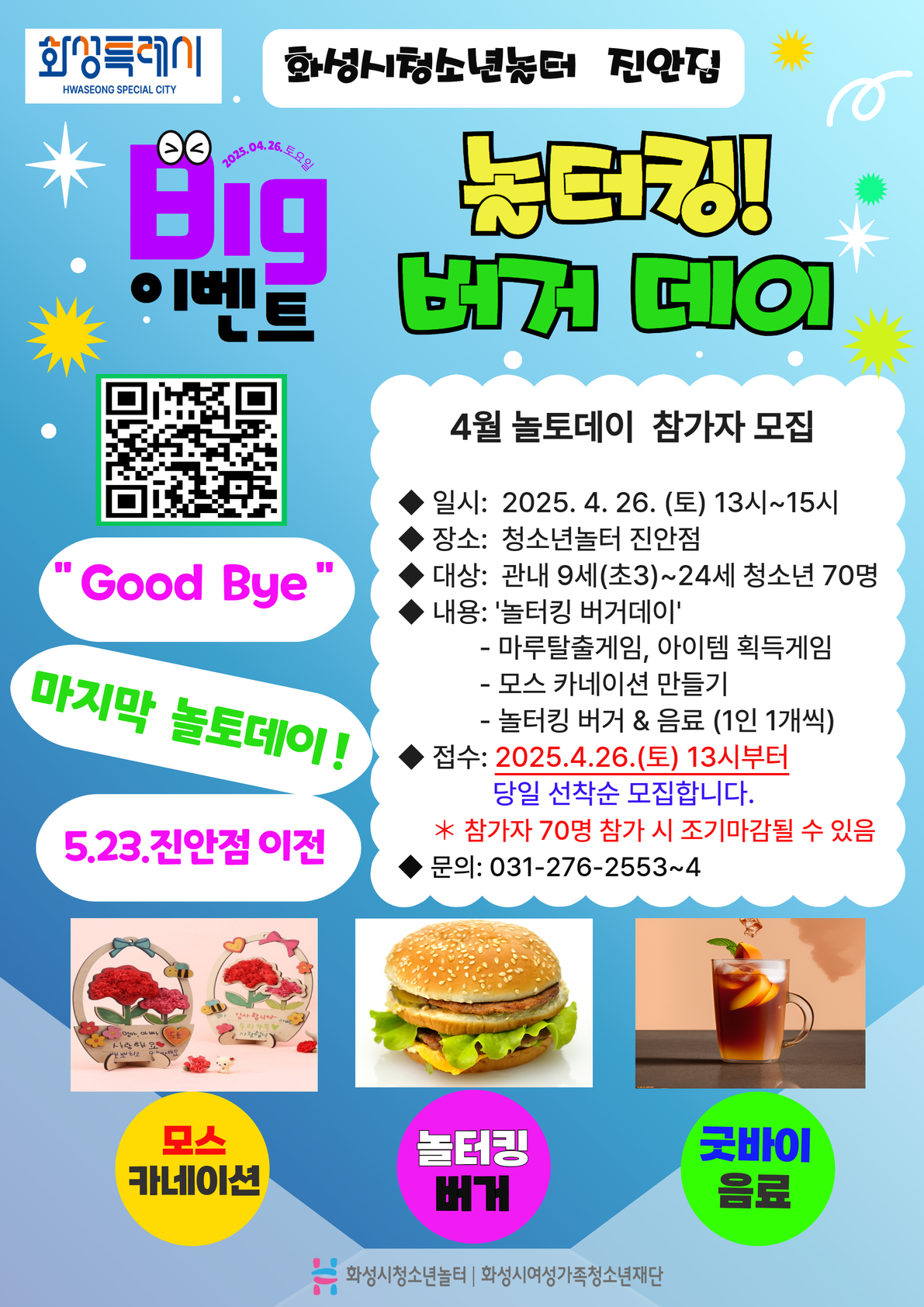 제목 [청소년놀터 진안점] 4월 놀토데이 '놀터킹 버거데이' 참가자 모집