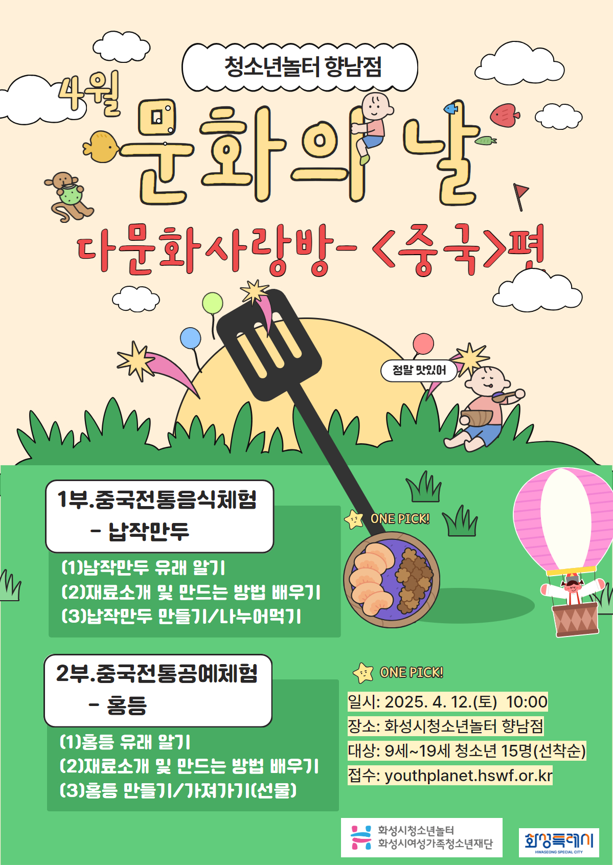 청소년놀터 향남점에서 4월 문화의 날 프로그램을 진행합니다.