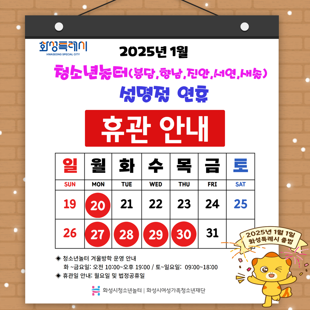 청소년놀터 겨울방학 운영 안내