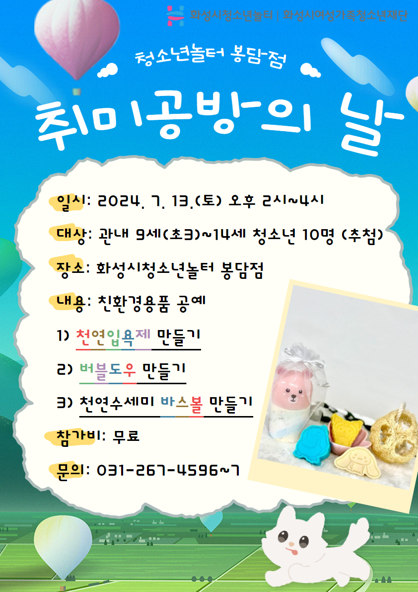 제목 [청소년놀터 봉담점] 7월 취미공방의 날 안내