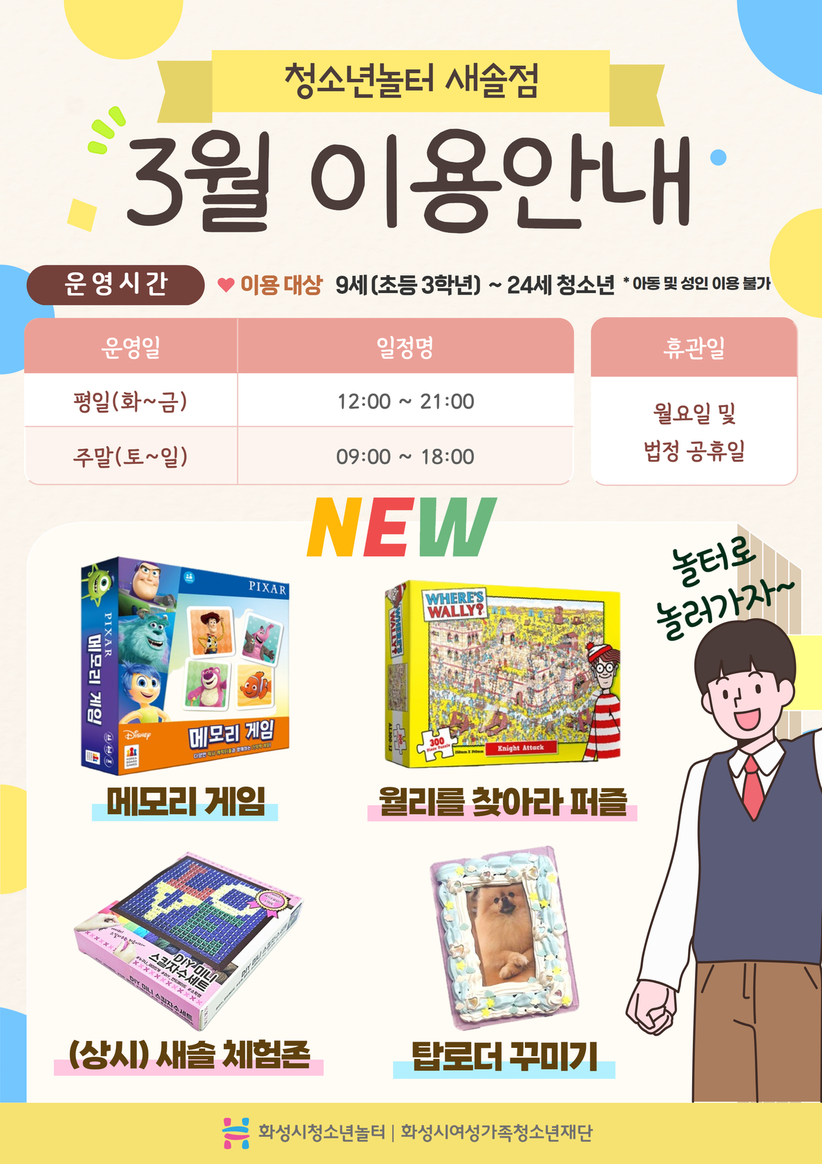 제목 [청소년놀터 새솔점] 3월 운영 시간 및 이용 안내