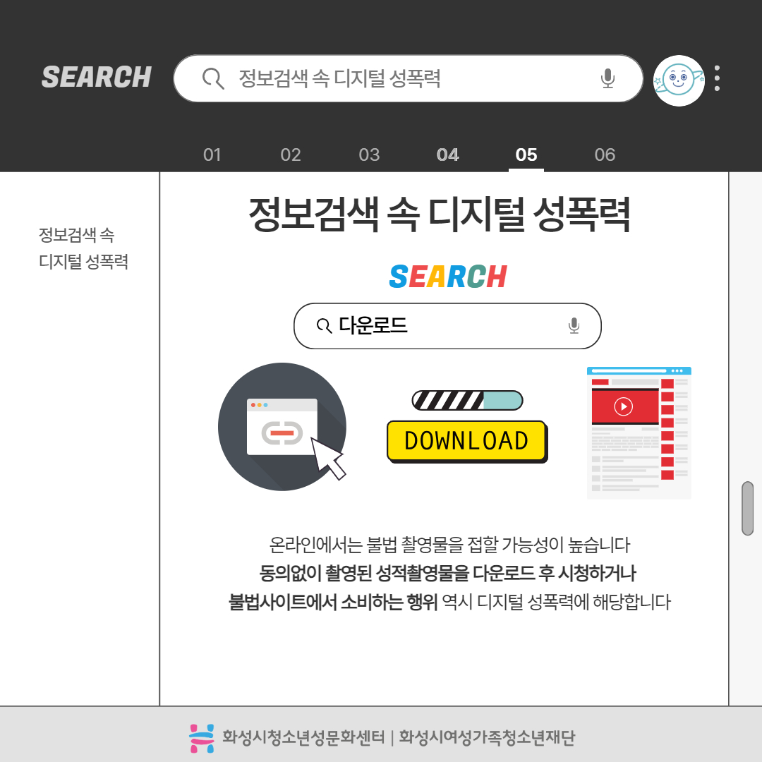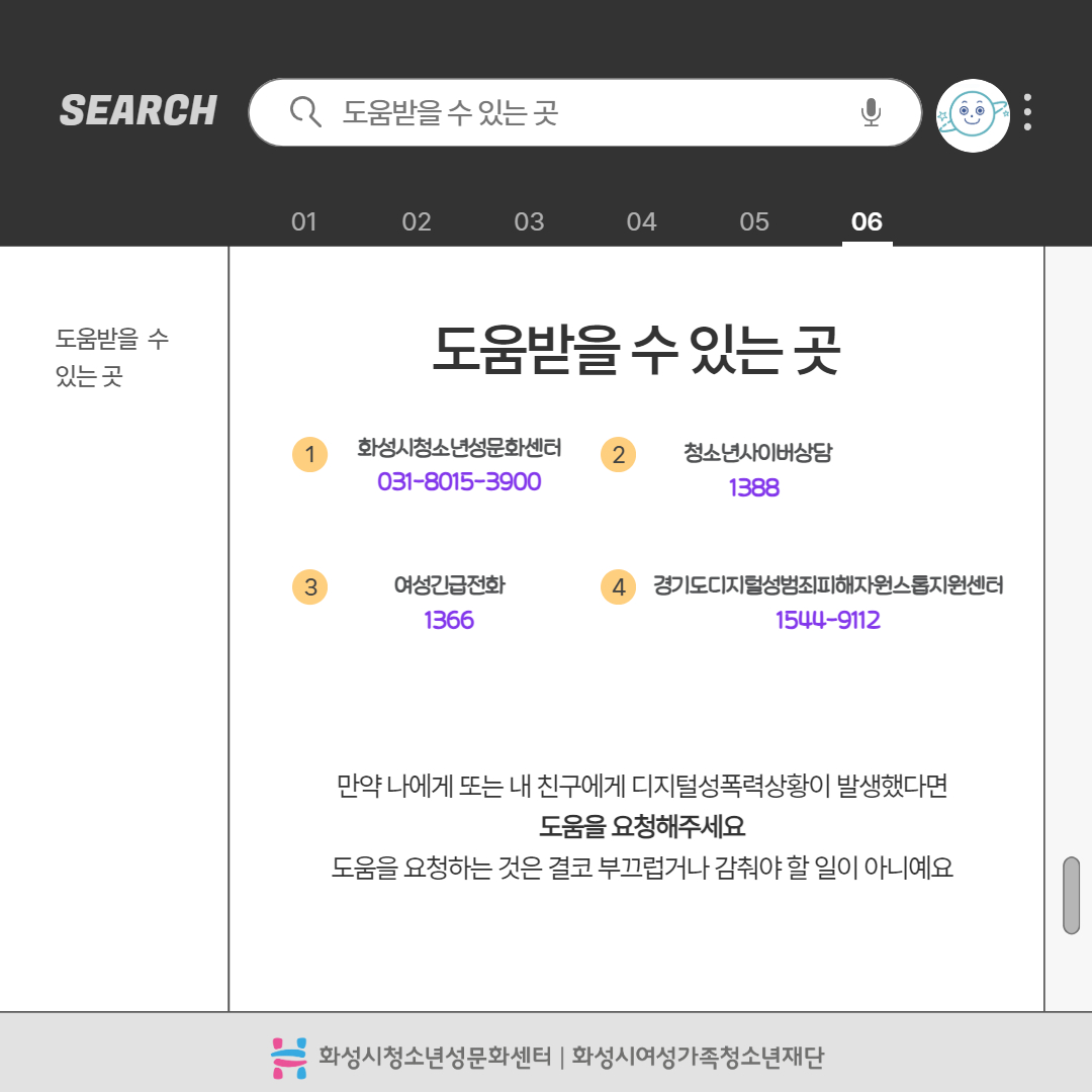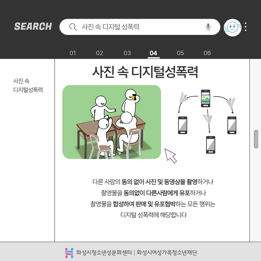 제목 2025년 사이버폭력예방주간 '디지털성폭력예방 캠페인' 운영센터 화성시청소년성문화센터 작성일 2025년 6월 16일 10시 3분 조회수 434 첨부 파일 아이콘디지털성폭력예방 카드뉴스 1.jpg (201.29KB)다운로드 아이콘 파일 아이콘디지털성폭력예방 카드뉴스 2.jpg (225.2KB)다운로드 아이콘 파일 아이콘디지털성폭력예방 카드뉴스 3.jpg (289.01KB)다운로드 아이콘 파일 아이콘디지털성폭력예방 카드뉴스 4.jpg (409.59KB)다운로드 아이콘 파일 아이콘디지털성폭력예방 카드뉴스 5.jpg (382.46KB)다운로드 아이콘 파일 아이콘디지털성폭력예방 카드뉴스 6.jpg (319.69KB)다운로드 아이콘 파일 아이콘디지털성폭력예방 카드뉴스 7.jpg (430.37KB)다운로드 아이콘 파일 아이콘디지털성폭력예방 카드뉴스 8.jpg (209.72KB)다운로드 아이콘 파일 아이콘디지털성폭력예방 카드뉴스 9.jpg (360.22KB)다운로드 아이콘 파일 아이콘디지털성폭력예방 카드뉴스 10.jpg (181.63KB)다운로드 아이콘 목록보기