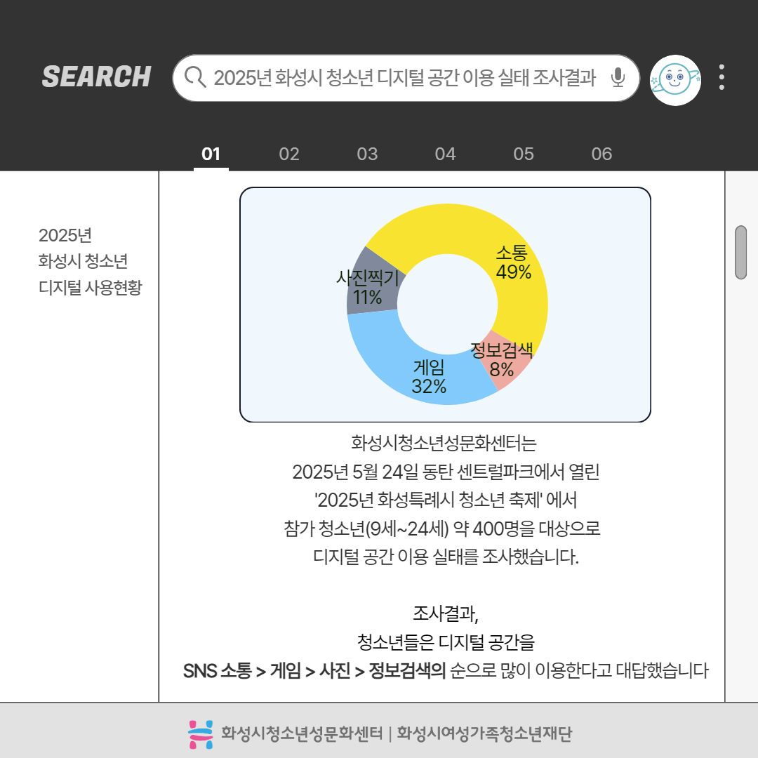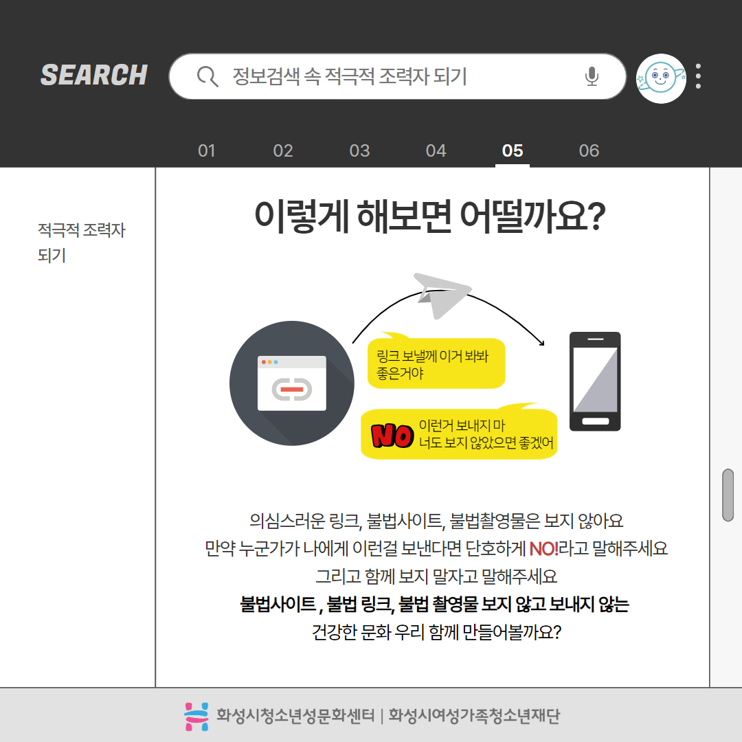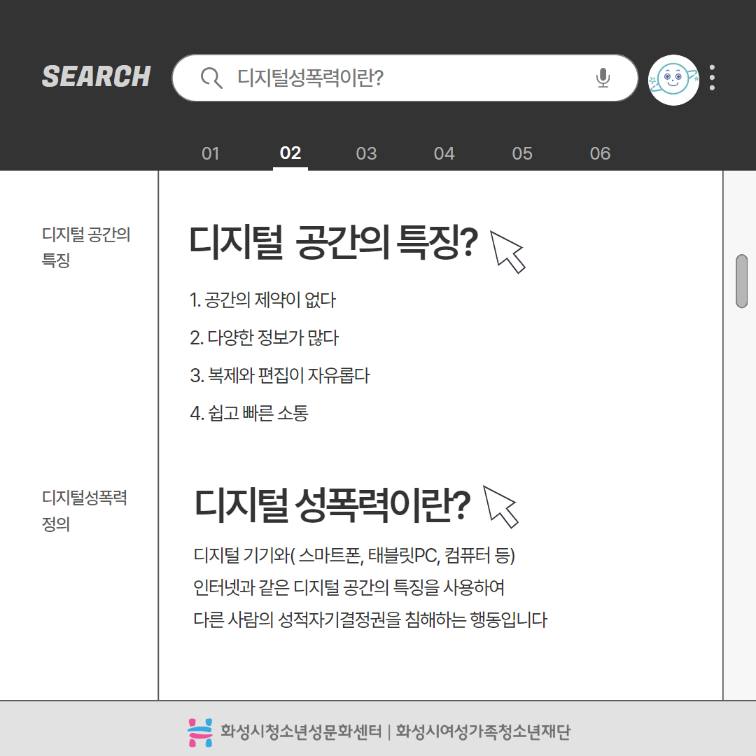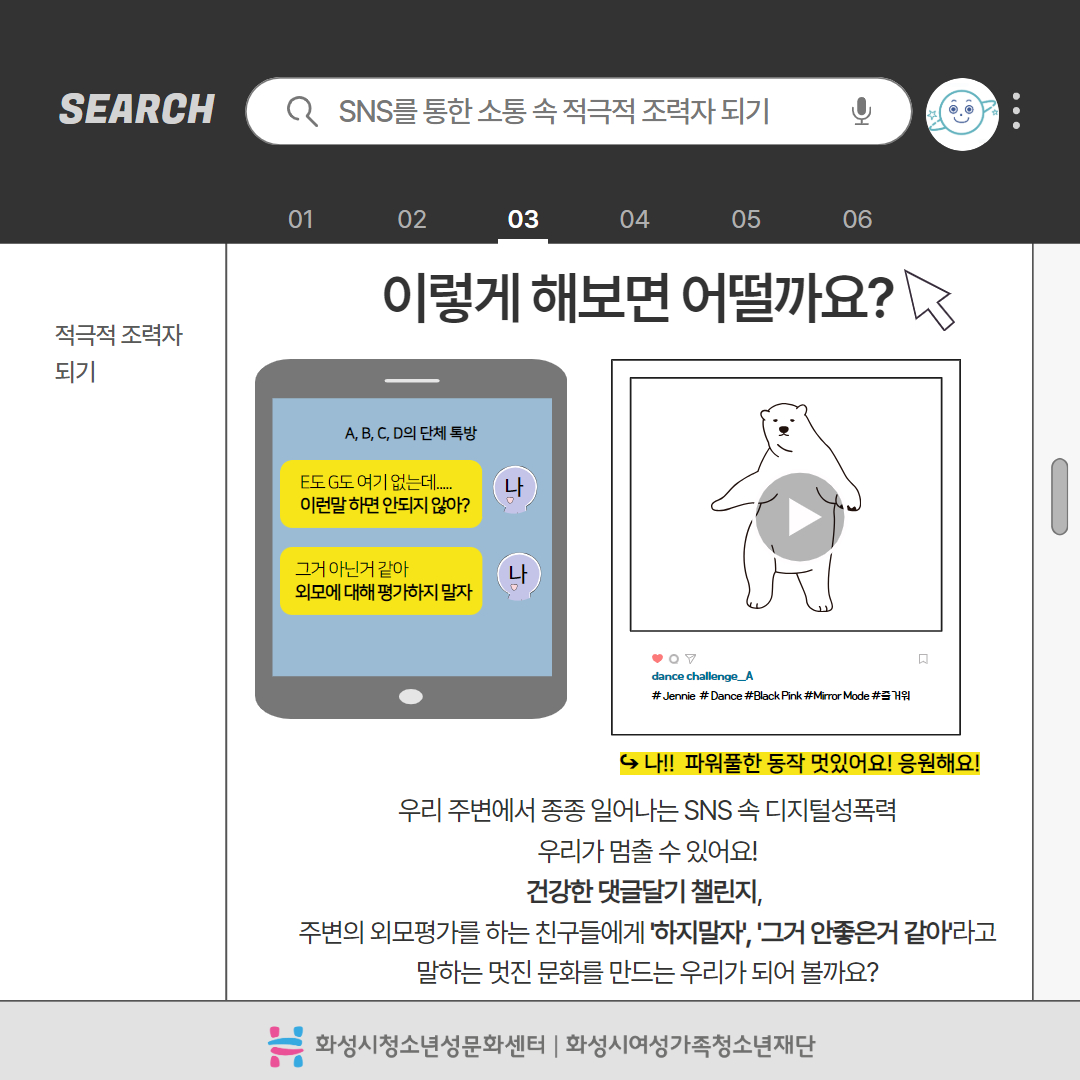 제목 2025년 사이버폭력예방주간 '디지털성폭력예방 캠페인' 운영센터 화성시청소년성문화센터 작성일 2025년 6월 16일 10시 3분 조회수 434 첨부 파일 아이콘디지털성폭력예방 카드뉴스 1.jpg (201.29KB)다운로드 아이콘 파일 아이콘디지털성폭력예방 카드뉴스 2.jpg (225.2KB)다운로드 아이콘 파일 아이콘디지털성폭력예방 카드뉴스 3.jpg (289.01KB)다운로드 아이콘 파일 아이콘디지털성폭력예방 카드뉴스 4.jpg (409.59KB)다운로드 아이콘 파일 아이콘디지털성폭력예방 카드뉴스 5.jpg (382.46KB)다운로드 아이콘 파일 아이콘디지털성폭력예방 카드뉴스 6.jpg (319.69KB)다운로드 아이콘 파일 아이콘디지털성폭력예방 카드뉴스 7.jpg (430.37KB)다운로드 아이콘 파일 아이콘디지털성폭력예방 카드뉴스 8.jpg (209.72KB)다운로드 아이콘 파일 아이콘디지털성폭력예방 카드뉴스 9.jpg (360.22KB)다운로드 아이콘 파일 아이콘디지털성폭력예방 카드뉴스 10.jpg (181.63KB)다운로드 아이콘 목록보기