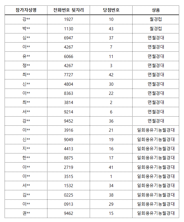 | 첨부 | 파일 아이콘당첨자 명단 이미지.GIF (21.64KB)다운로드 아이콘 | ||