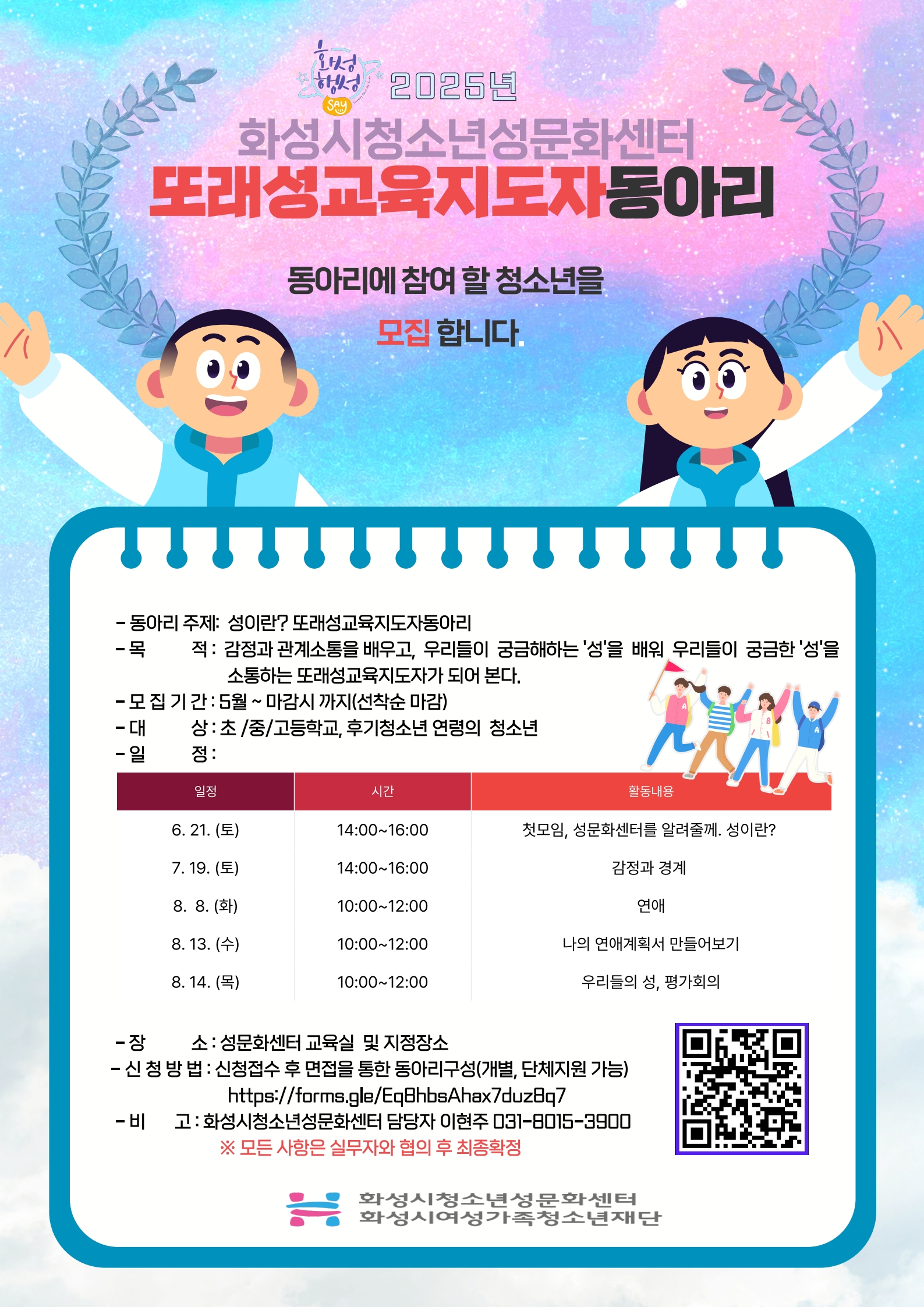 | 제목 | [청소년성문화센터] 2025년 청소년동아리 모집-또래성교육지도자 | ||