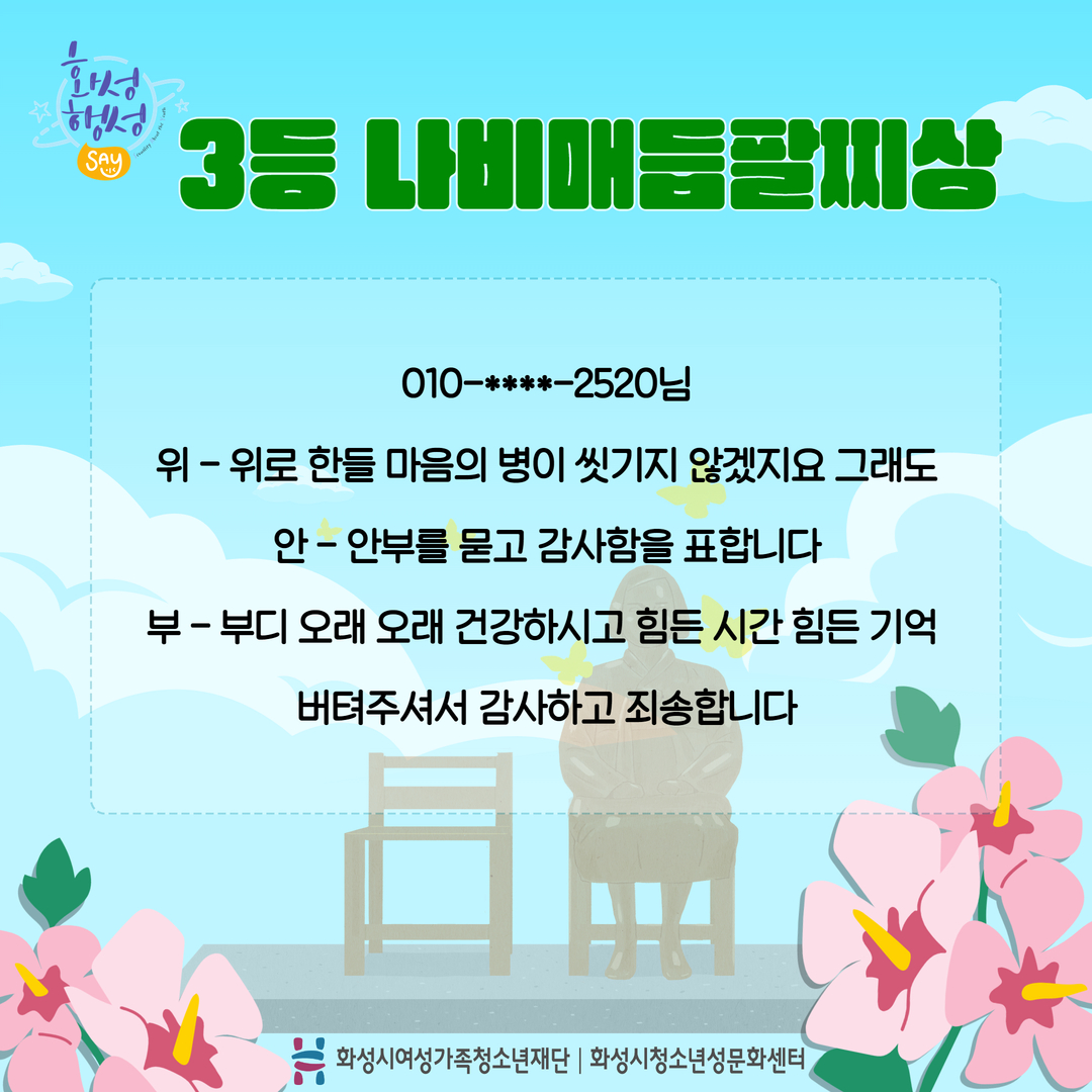 제목 [화성시청소년성문화센터] '위안부' 3행시 결과발표 합니다.