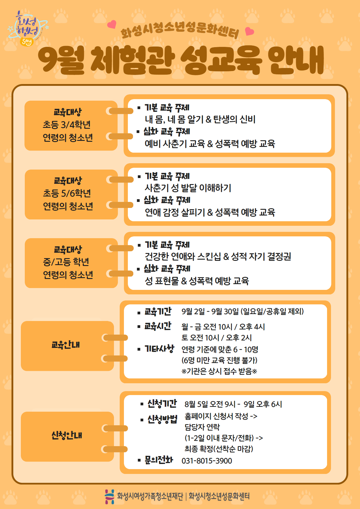 2024년 9월 체험관 성교육.jpg화성시청소년성문화센터 2024년 9월 체험관성교육 신청 안내 드립니다.