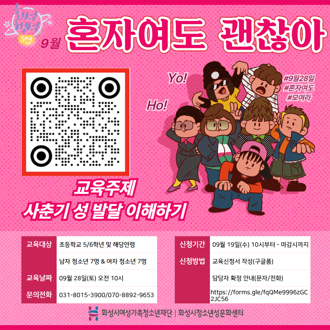 제목 [화성시청소년성문화센터] 9월 혼자여도 괜찮아 신청 안내