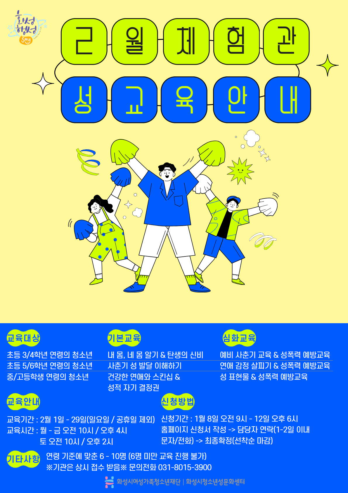 화성시청소년성문화센터 2024년 2월 체험관 교육 신청 안내 드립니다.