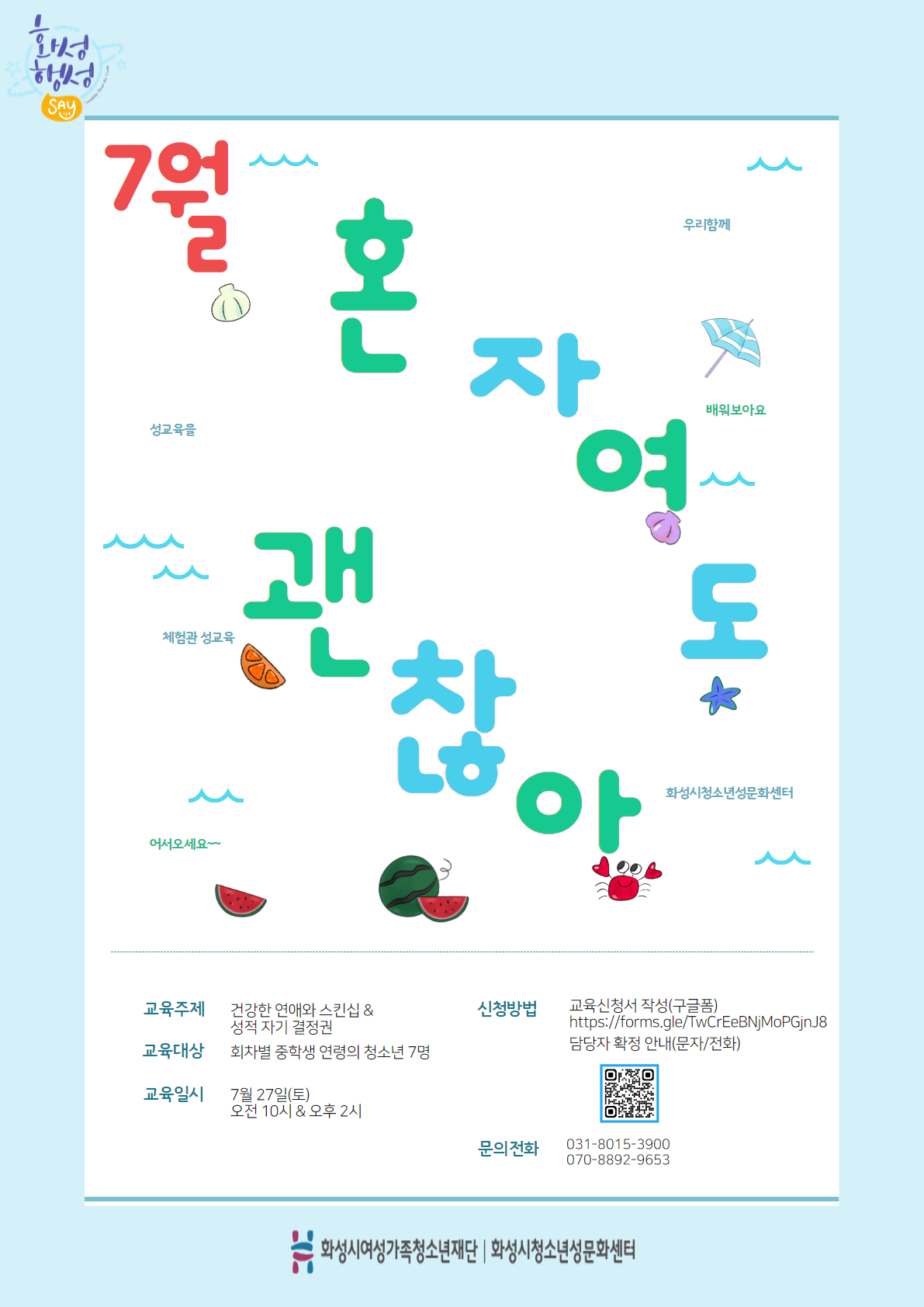 제목 [화성시청소년성문화센터]2024년 7월 혼자여도 괜찮아 신청안내