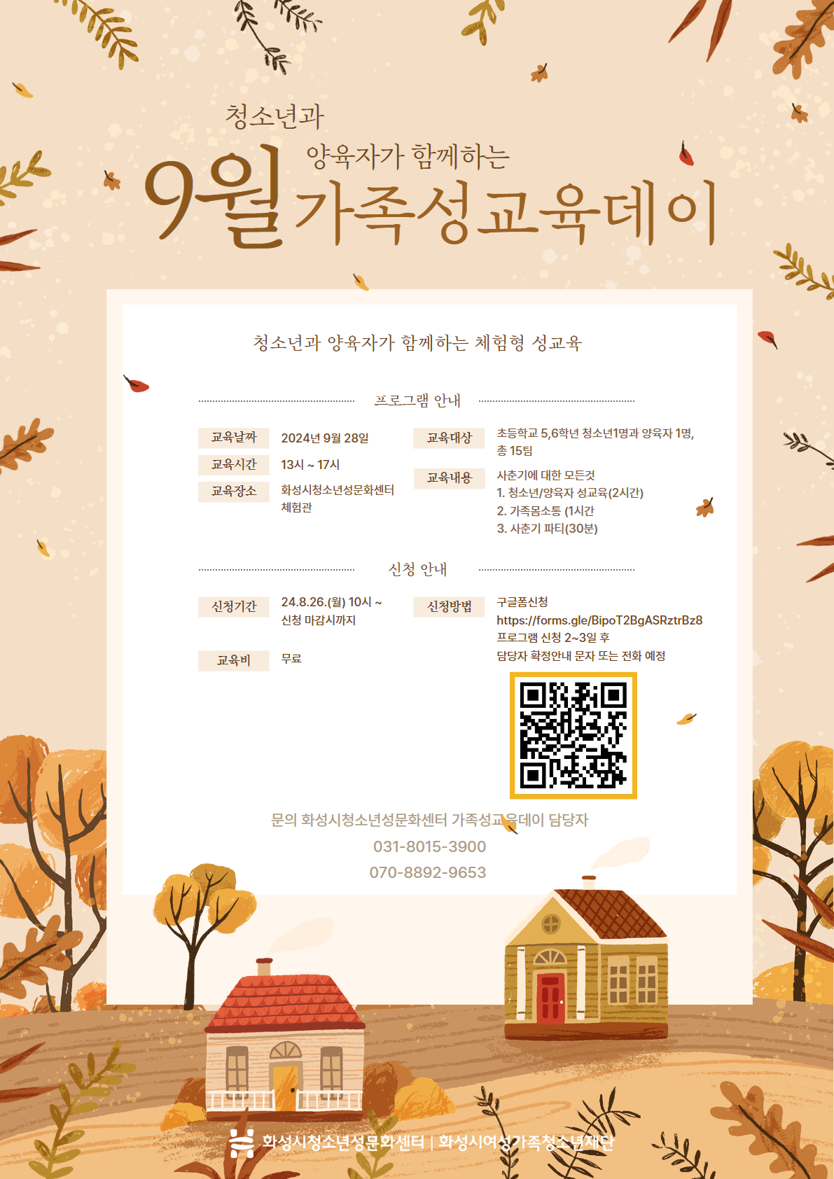 | 제목 | [화성시청소년성문화센터] 9월 가족성교육데이 신청 안내 | ||