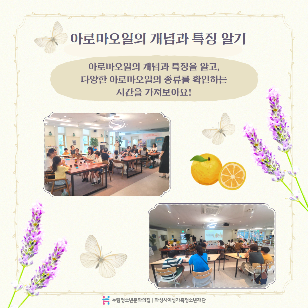 9월 6일 더누림 가족체험활동 2차 프로그램인 "가족과 함께 감정오일 아로마테라피" 진행하였습니다.