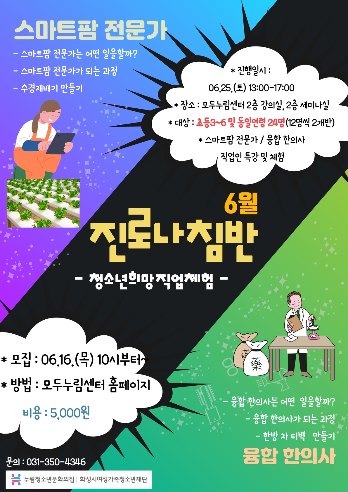 | 제목 | [누림청소년문화의집] 진로나침반 4탄 <스마트팜 전문가 / 융합 한의사> 참가자 모집(10살부터) | ||