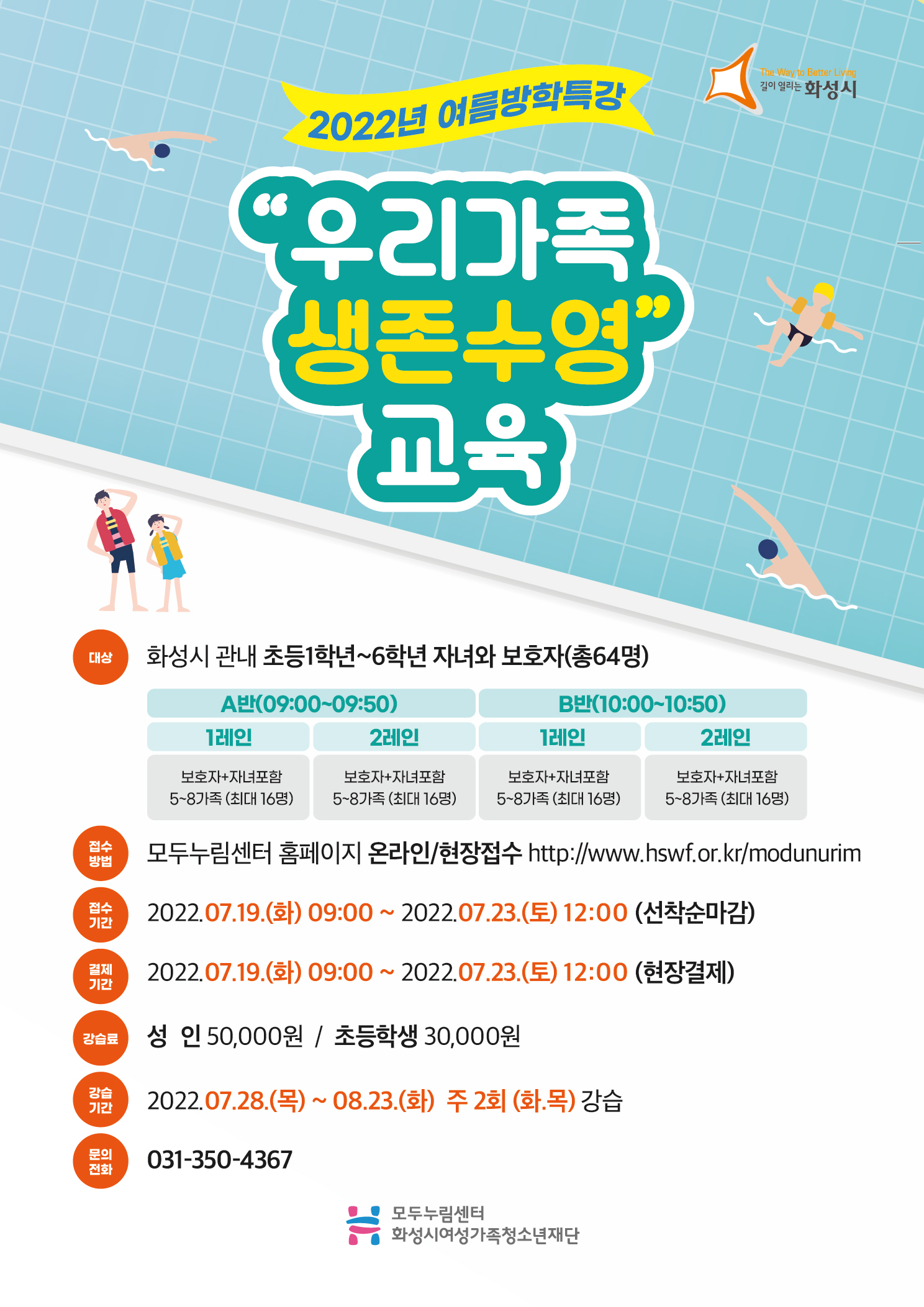 [모두누림센터] 수영장 여름방학특강 "우리가족 생존수영"