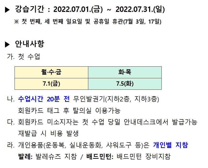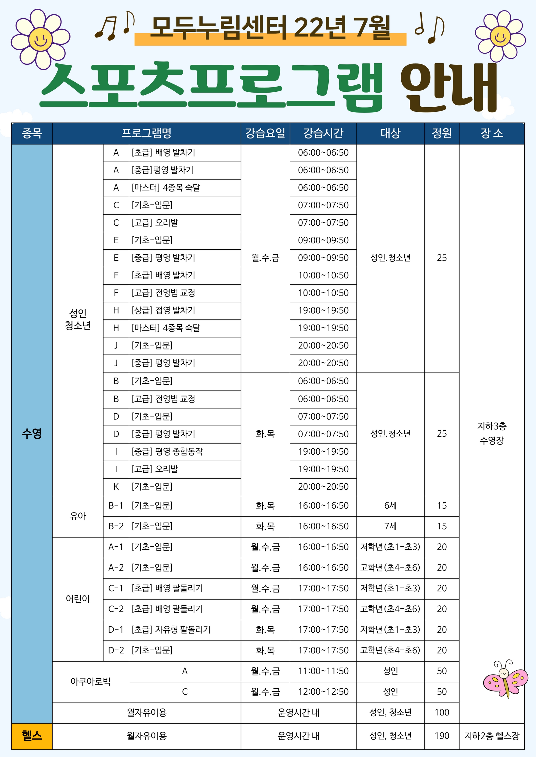 [모두누림센터] 7월 스포츠프로그램 개강안내