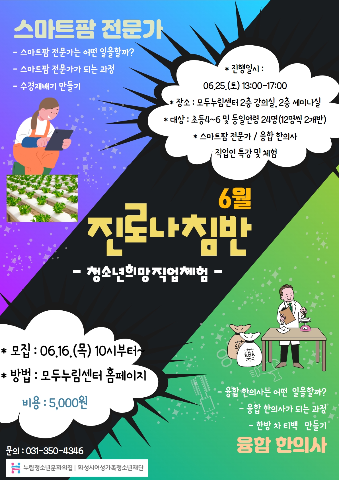| 제목 | [누림청소년문화의집] 진로나침반 2탄 <스마트팜 전문가 / 융합한의사> 참가자 모집 | |||||||||||