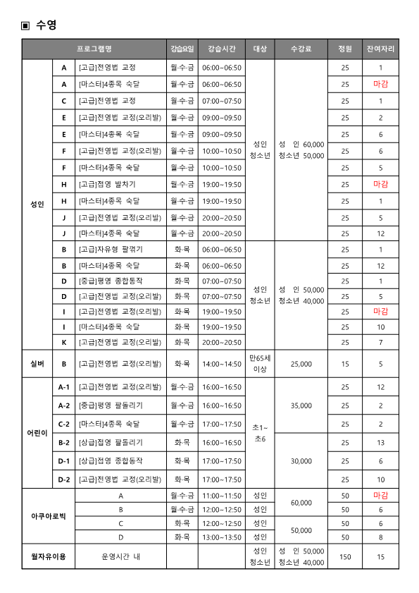 | 첨부 | 파일 아이콘12월 잔여자리 공지(23.11.24.).pdf (84.22KB)다운로드 아이콘 | ||