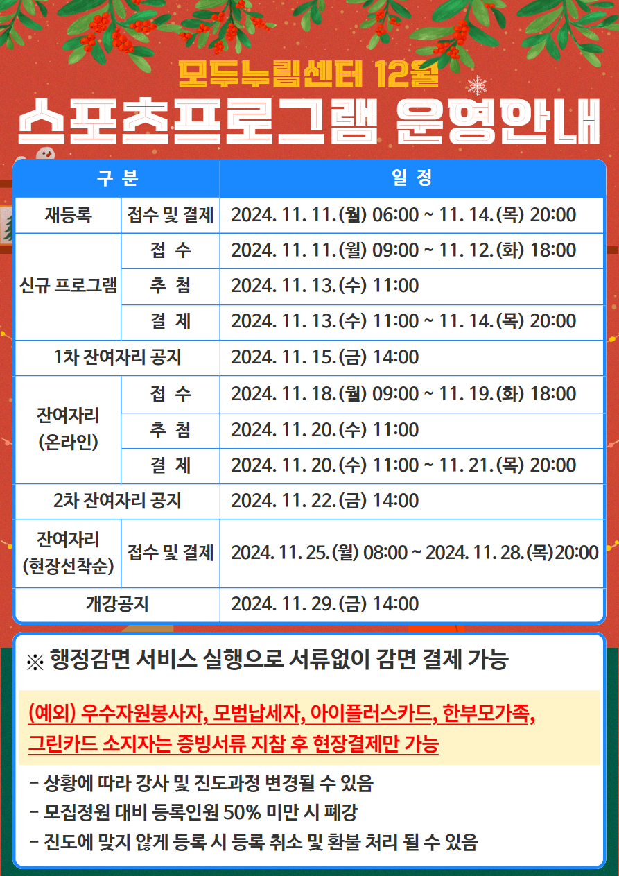 | 제목 | [모두누림센터] 12월 스포츠프로그램 등록 안내 | ||