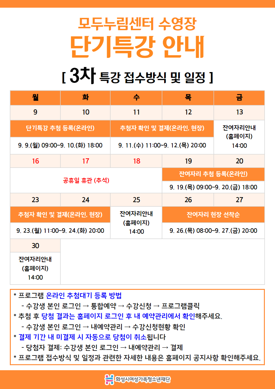 | 제목 | [모두누림센터] 수영 단기특강 3차 운영 안내 | ||