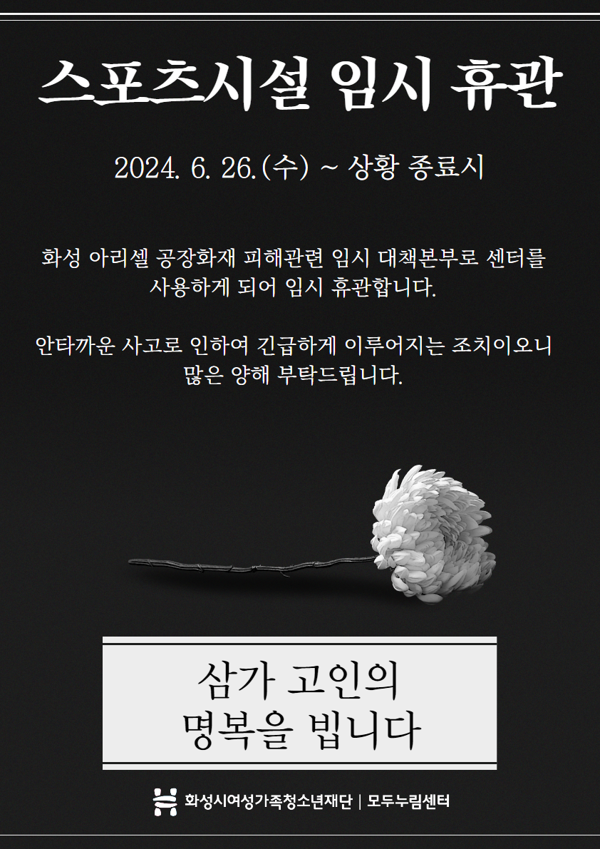 화성 아리셀 공장화재 피해관련 대책본부로 모두누림센터를 사용하게 되었습니다.