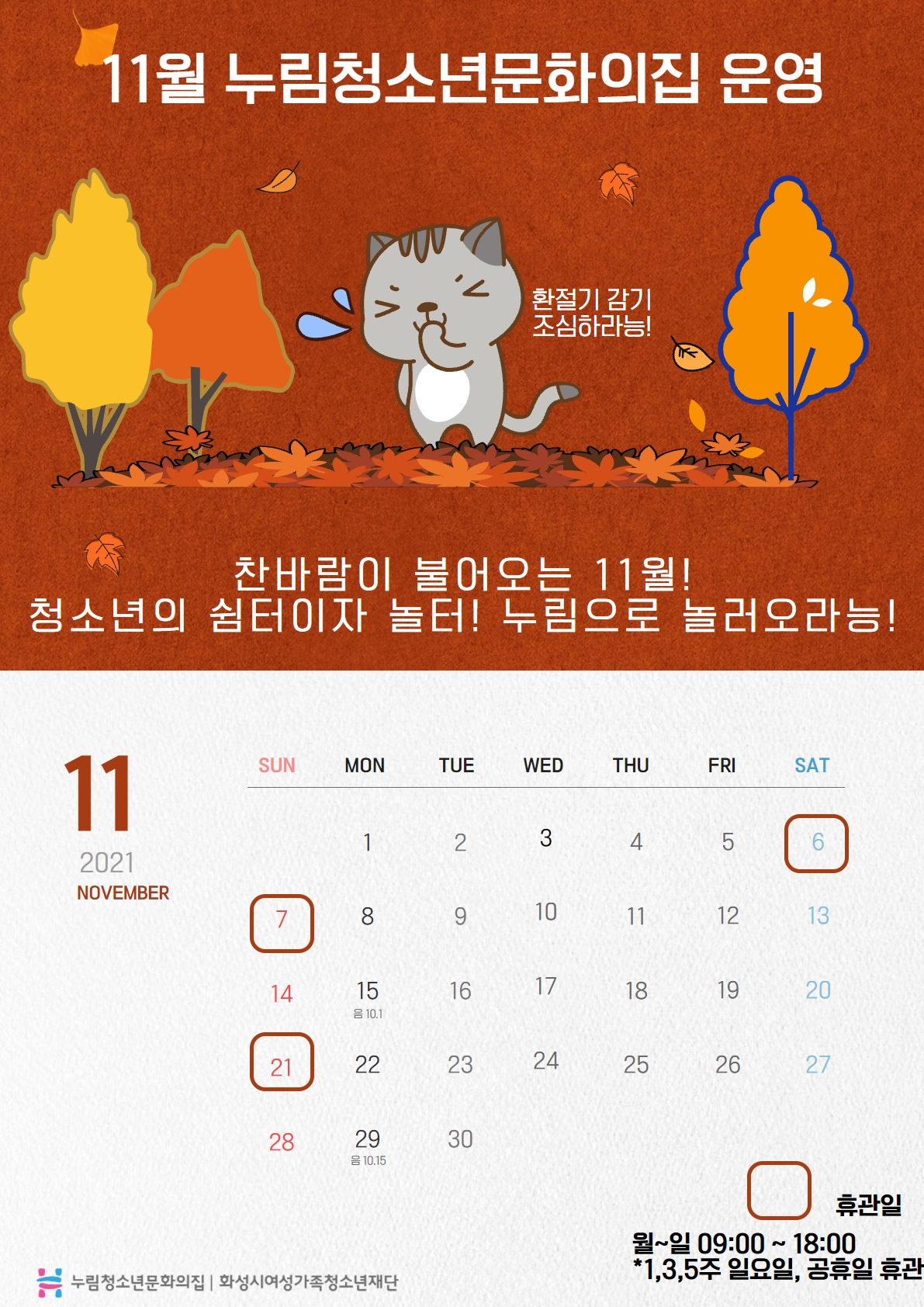 11월 청소년자율이용공간 일정을 안내드리오니 확인바랍니다.