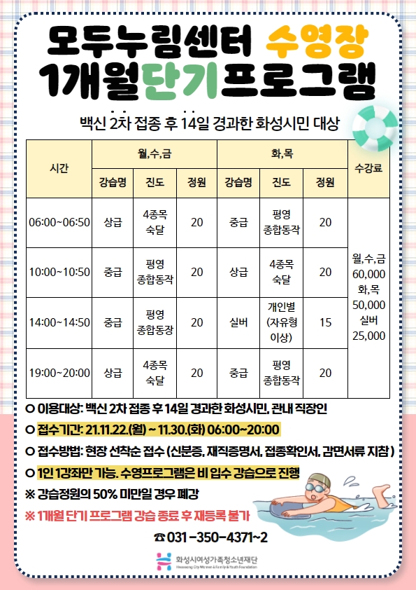[모두누림센터] 수영장 1개월 단기프로그램 안내