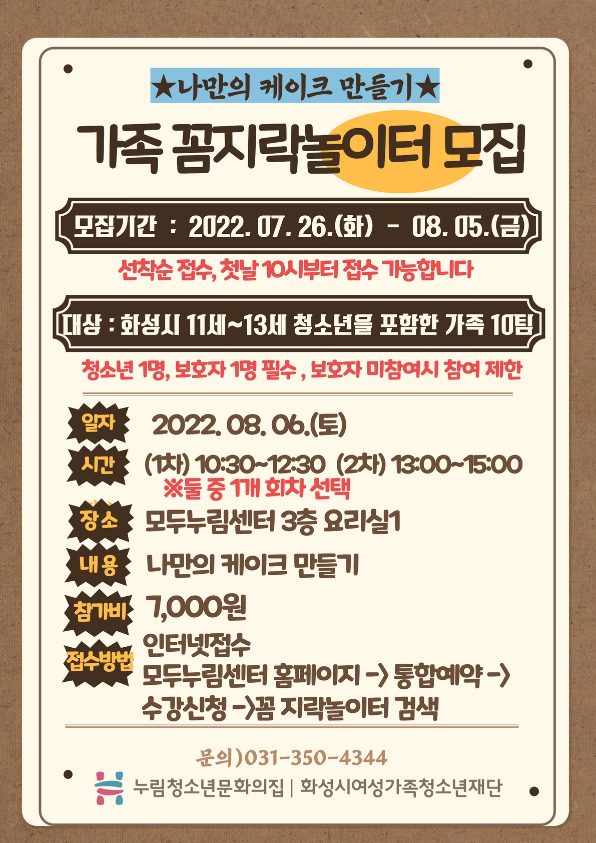 제목 [누림청소년문화의집] 8월 꼼지락놀이터 참가자 모집(케이크 만들기)