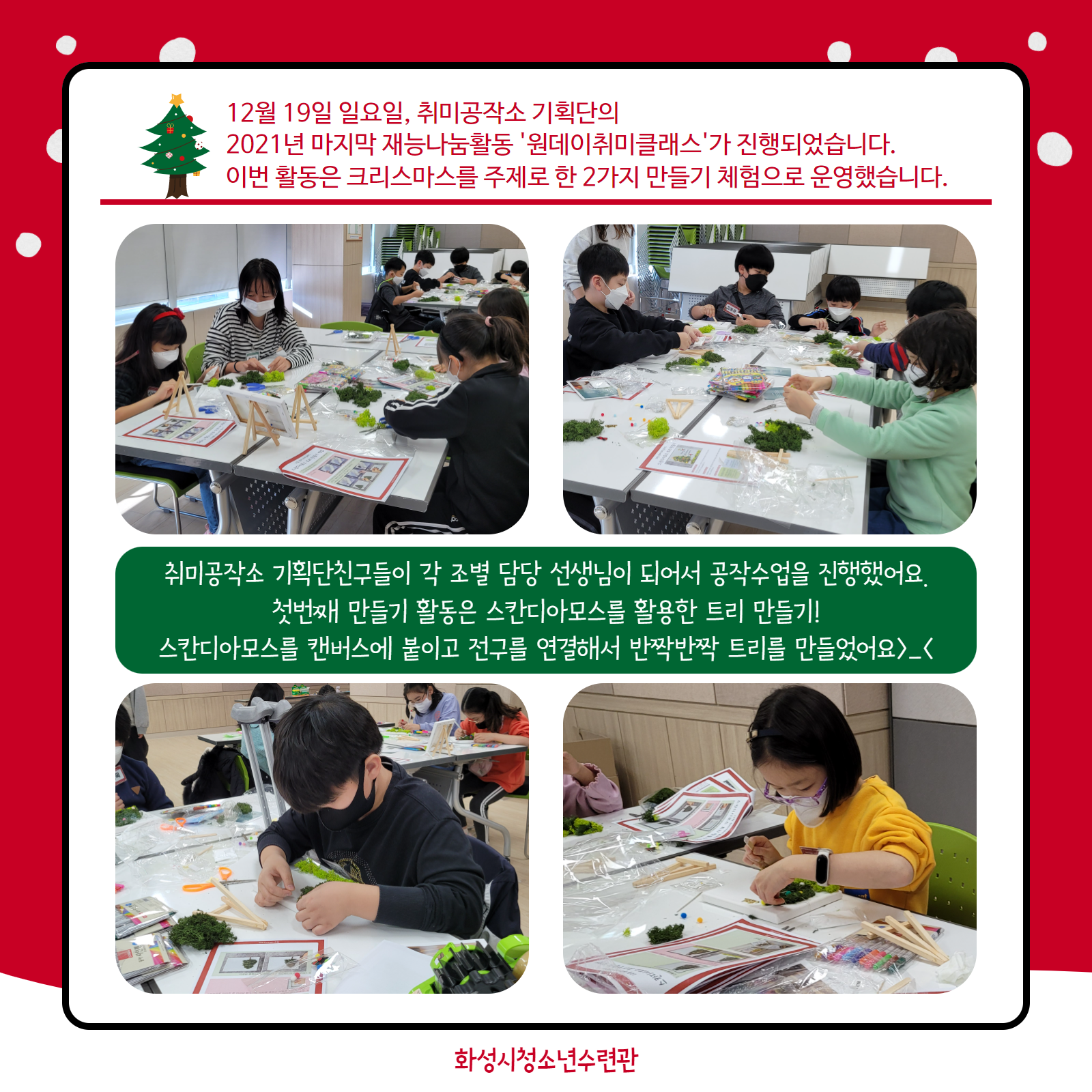 [화성시청소년수련관] 청소년취미공작소 기획단 재능나눔활동 - 12월 원데이취미클래스