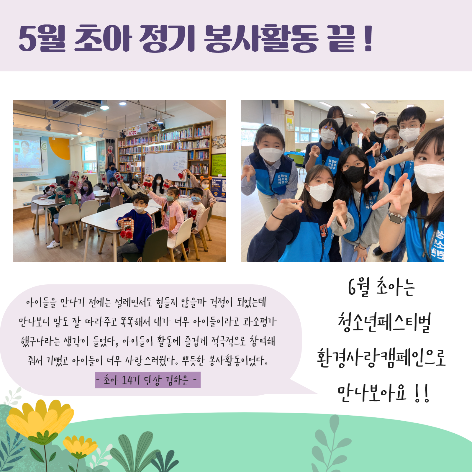그럼 5월 청소년자원봉사단 초아14기 활동을 지금 만나보시죠! > <