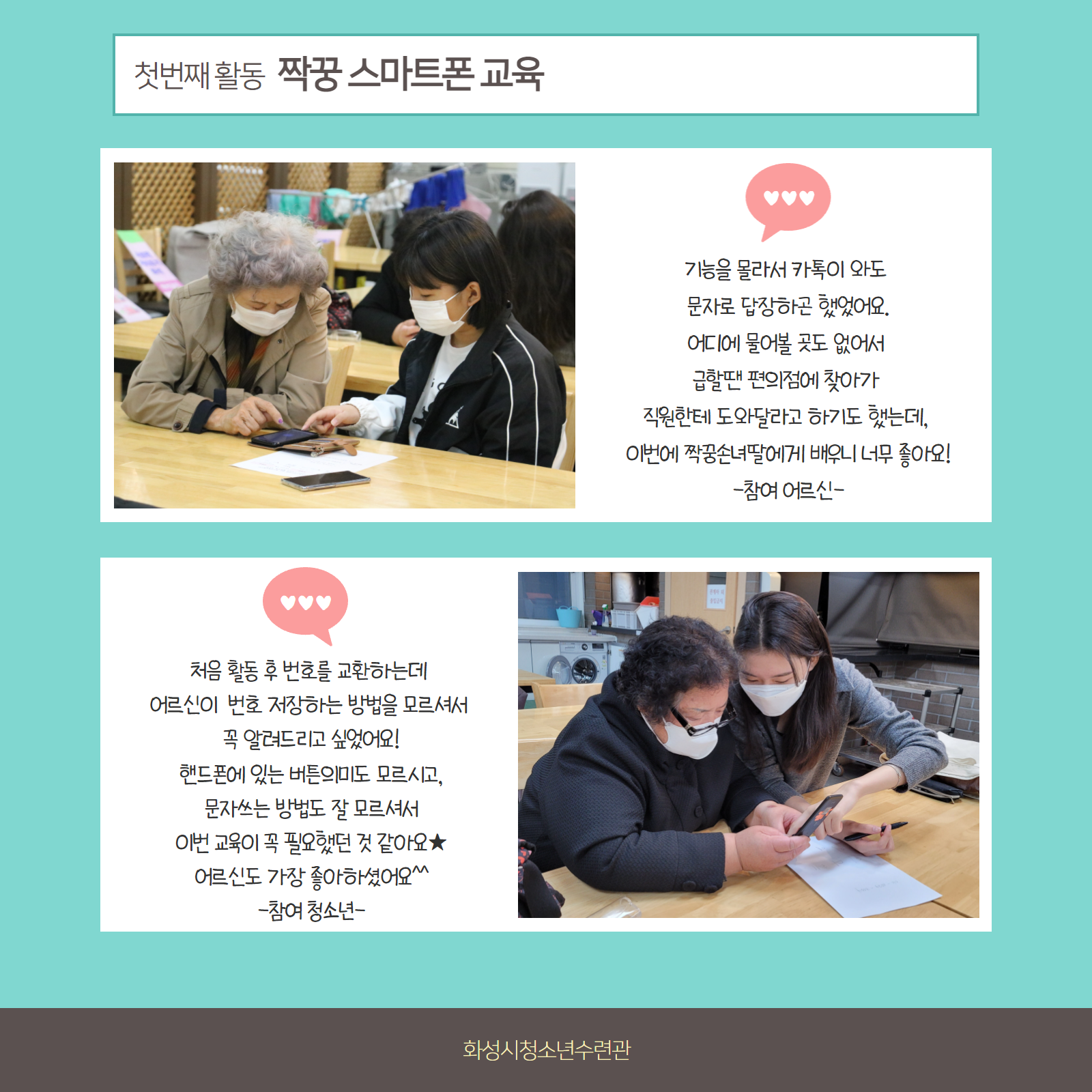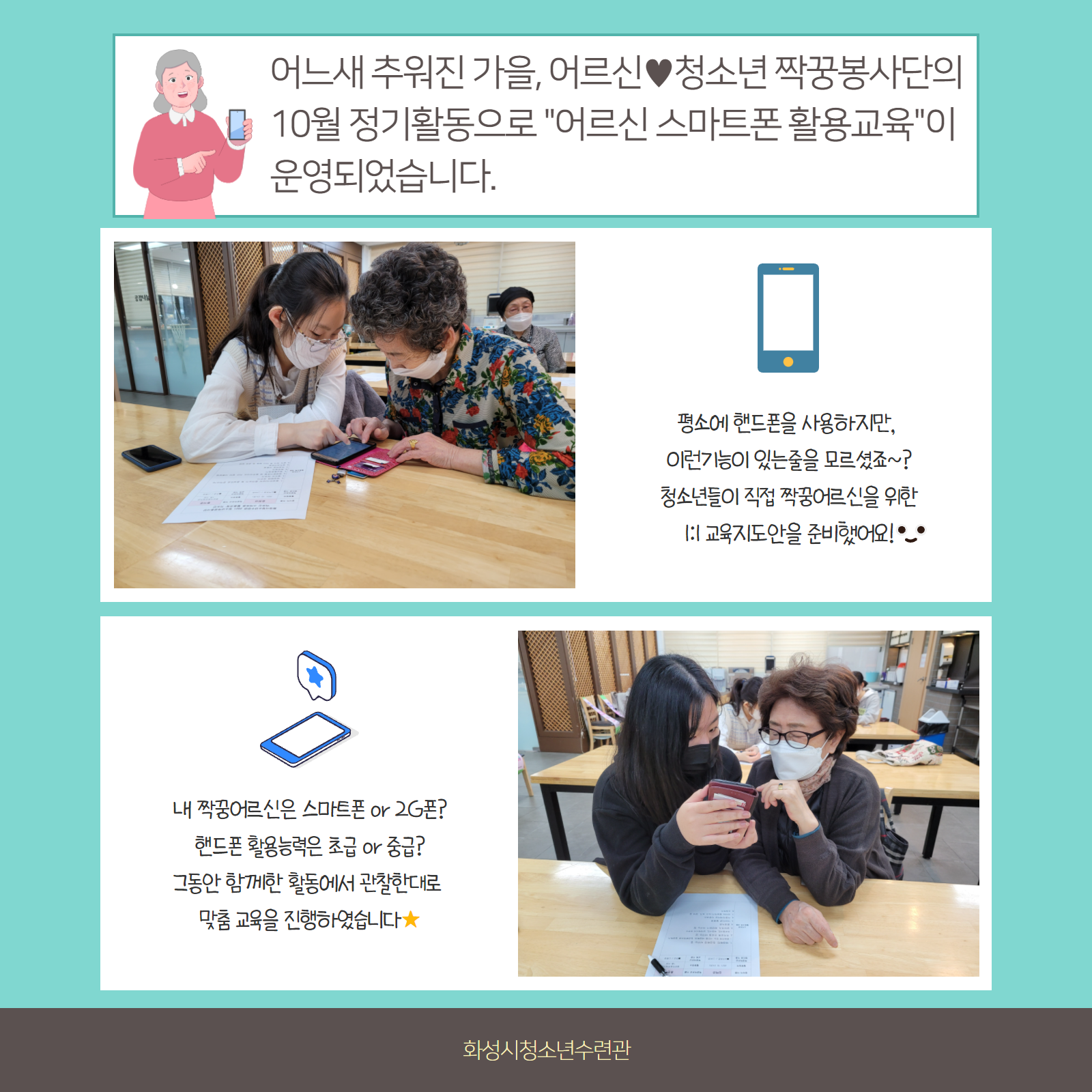 [화성시청소년수련관] 짝꿍봉사단 10월 정기활동 "어르신 스마트폰 활용교육"