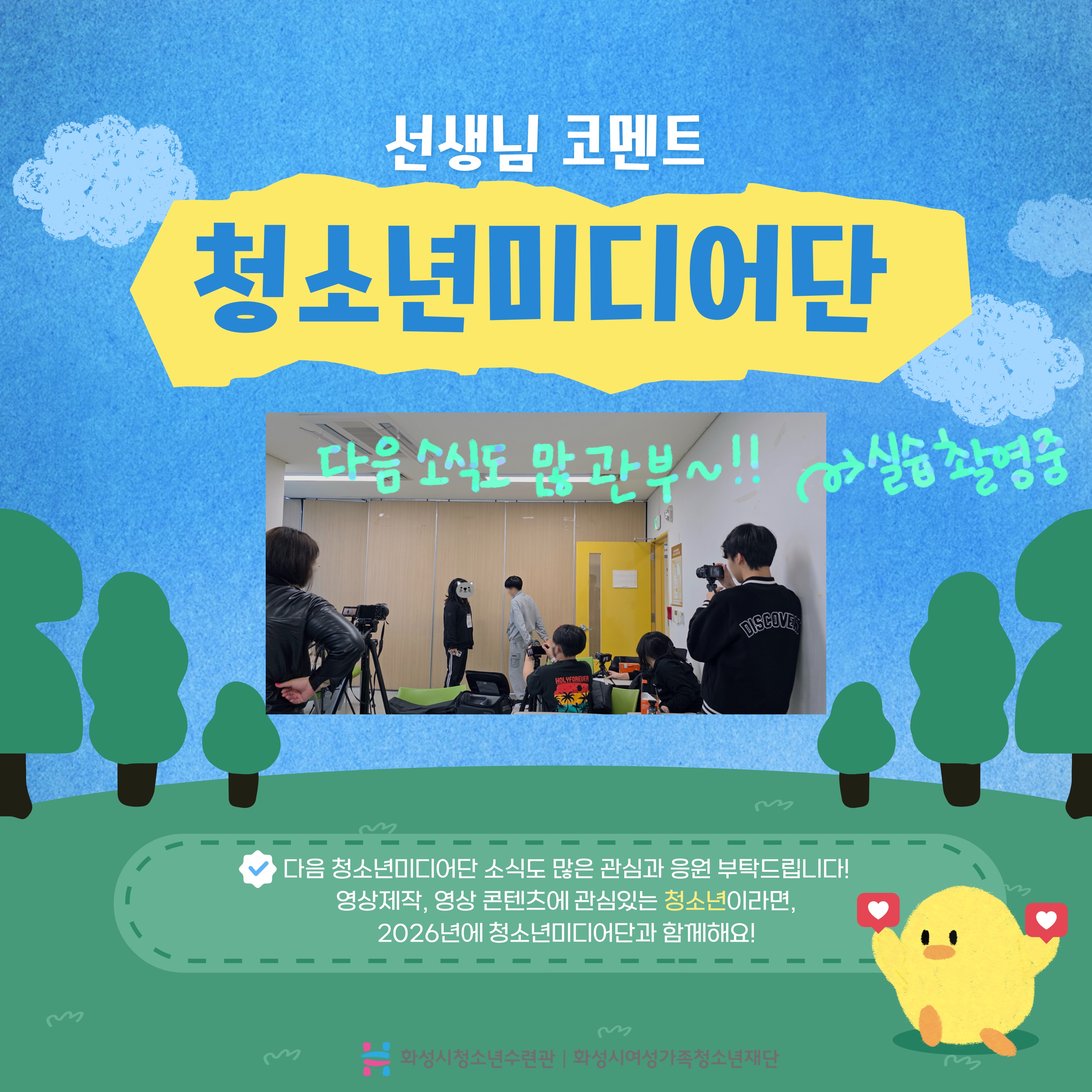 앞으로도 청소년미디어단 활동에 많은 관심과 응원 부탁드립니다!