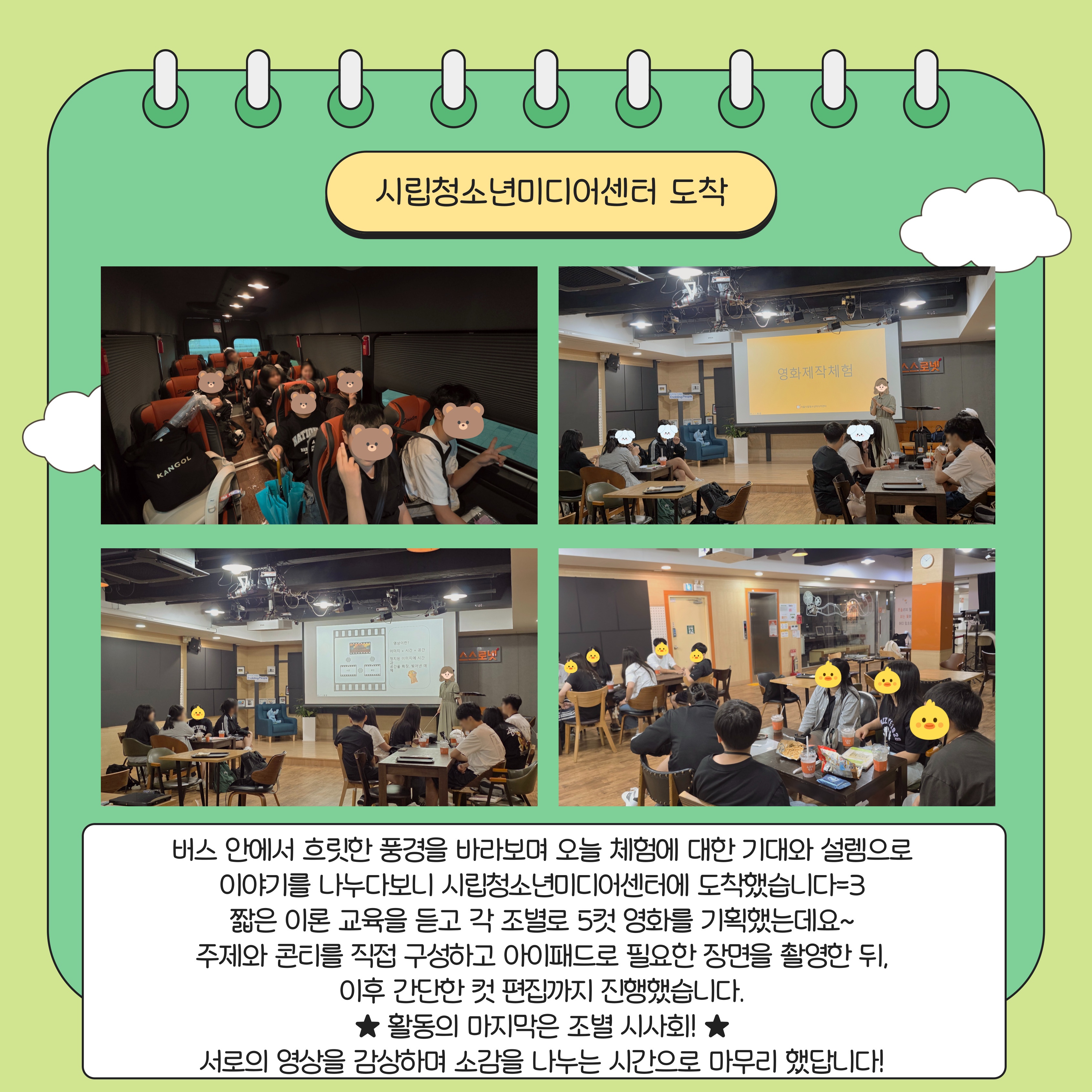 이번 활동에서는 시립청소년미디어센터 스스로넷을 방문하여 단원들이 직접 기획한 5컷 영화를 제작하고,