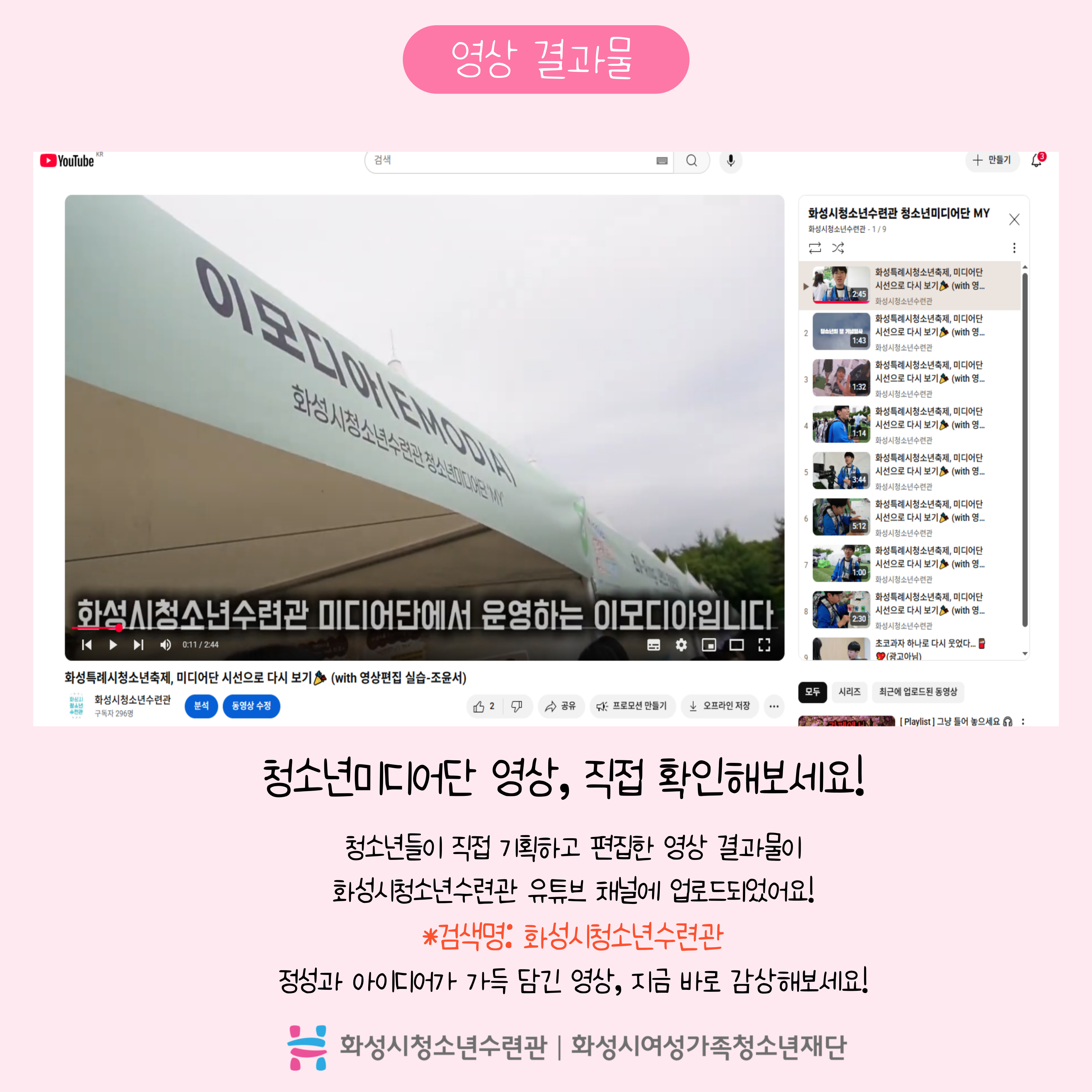 완성된 영상은 화성시청소년수련관 유튜브 채널에서 확인하실 수 있습니다!