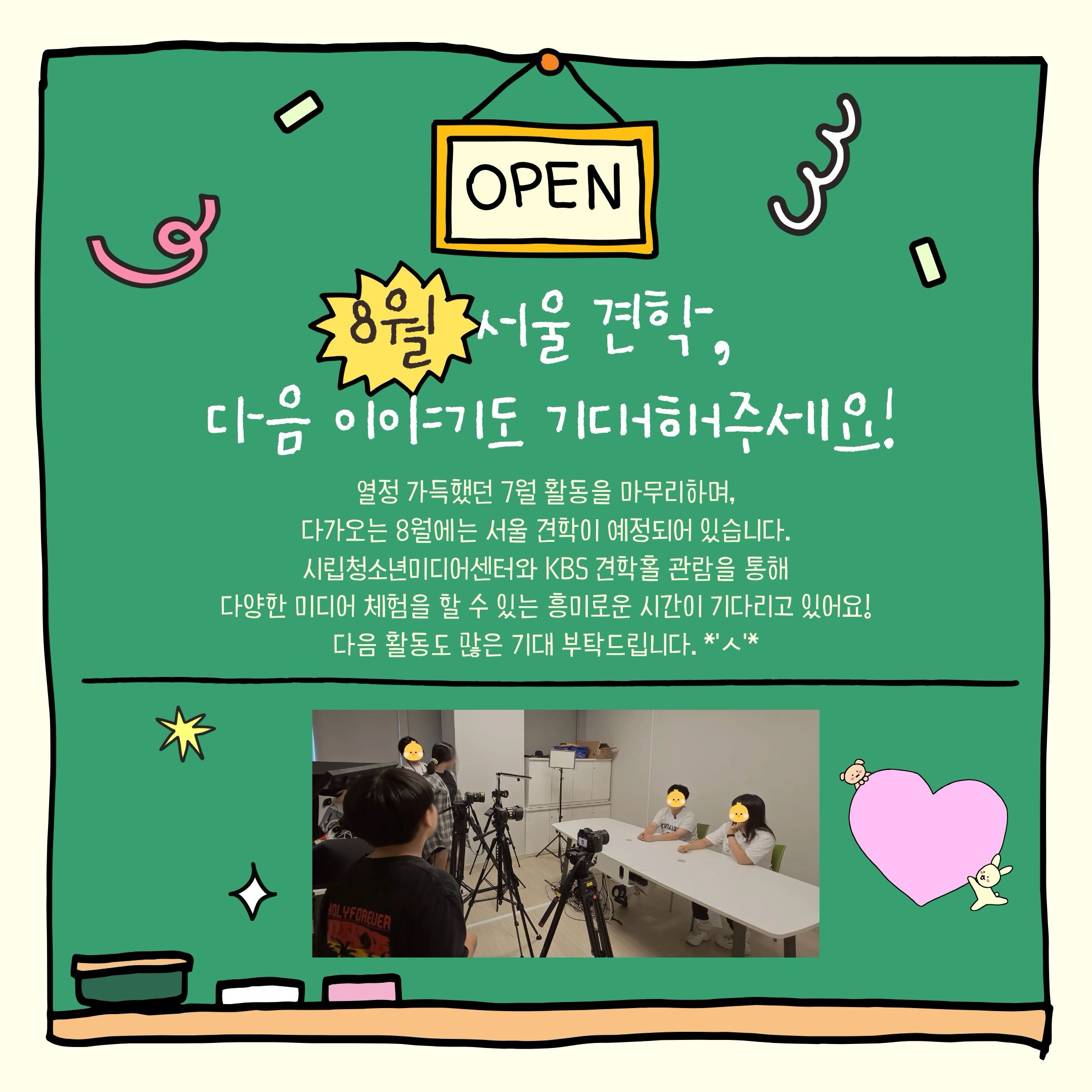 8월에는 서울 견학이 예정되어 있으며, 앞으로도 다양한 미디어 체험 활동이 이어질 예정입니다.