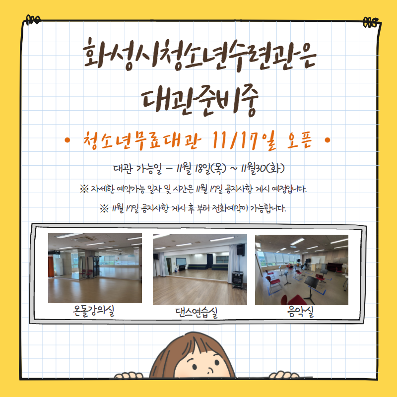 | 제목 | [화성시청소년수련관] 청소년무료시설 대관안내 | ||