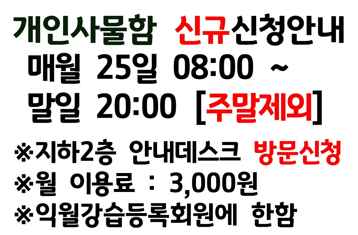 유앤아이센터 스포츠프로그램 등록회원 개인사물함 신규신청안내