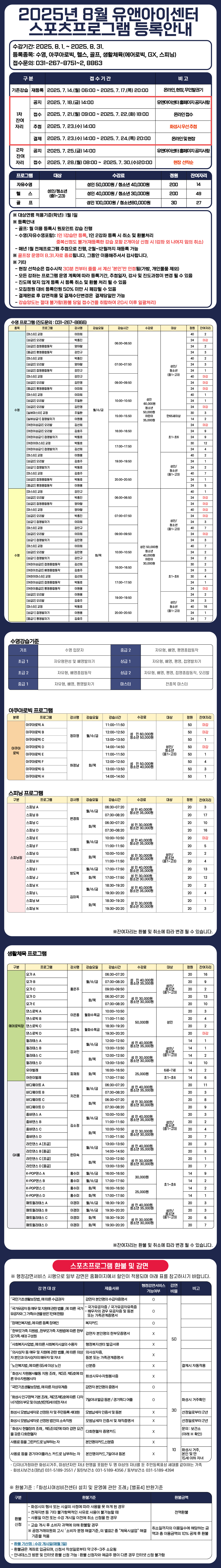 2025년 8월 스포츠프로그램 등록 안내