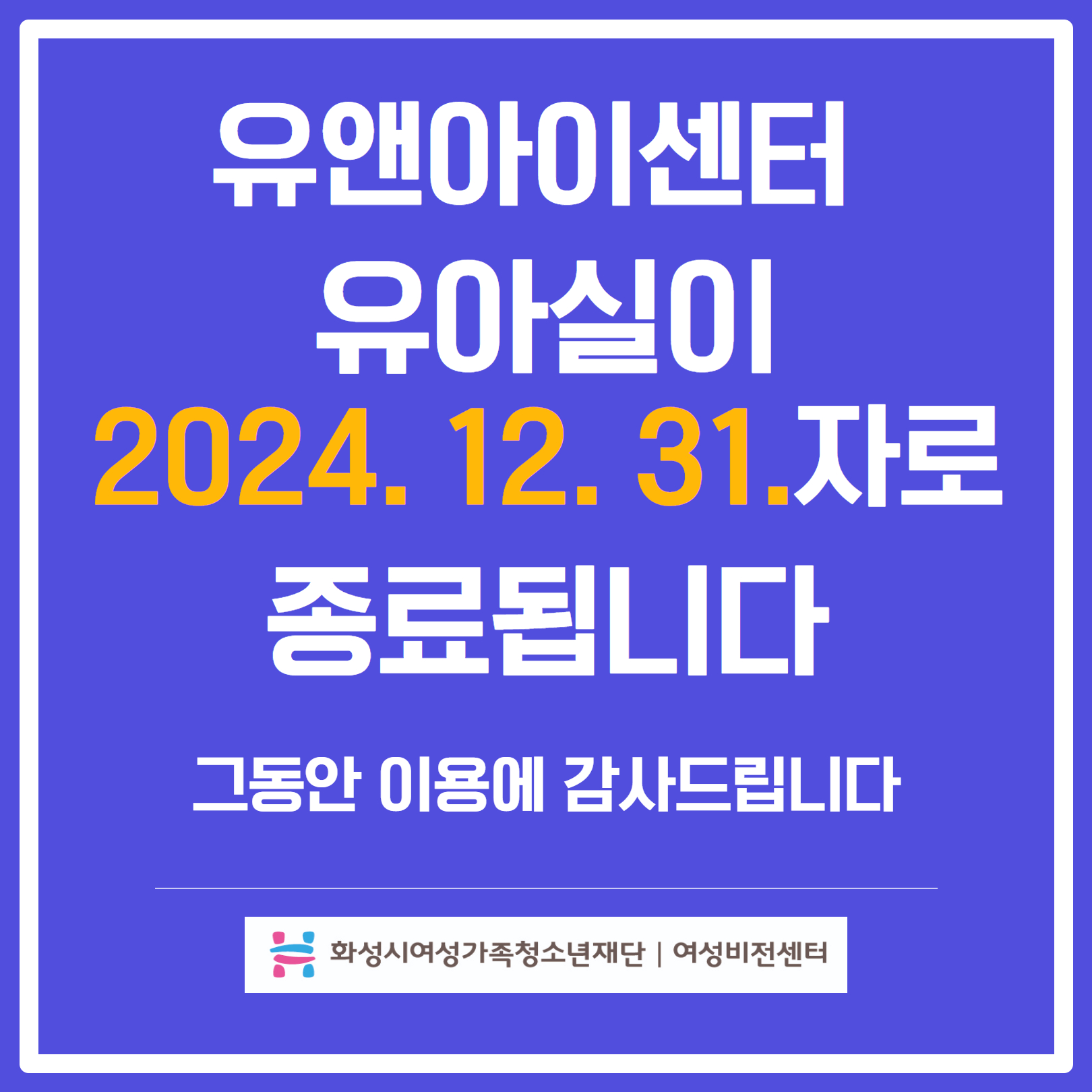 제목 ※유앤아이센터 유아실 운영 종료 안내※ 운영센터 유앤아이센터 작성일 2024년 12월 24일 9시 32분 조회수 861 첨부 파일 아이콘제목을 입력하세요 1.jpg (488.81KB)다운로드 아이콘 목록보기