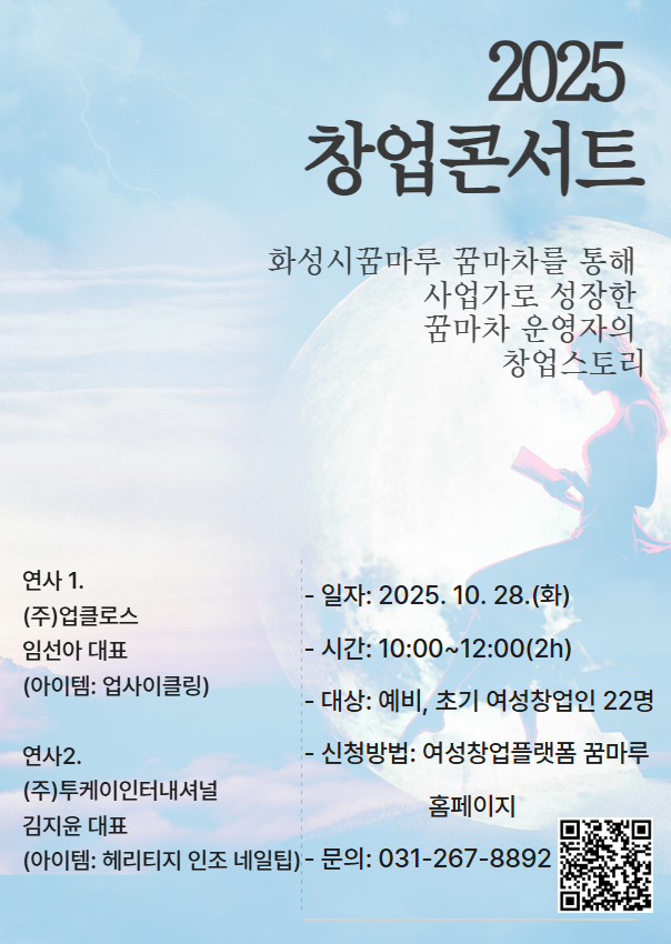 화성시 꿈마루가 경기도 거주 예비·초기 여성창업인을 위한 2025 창업콘서트를 마련했습니다.