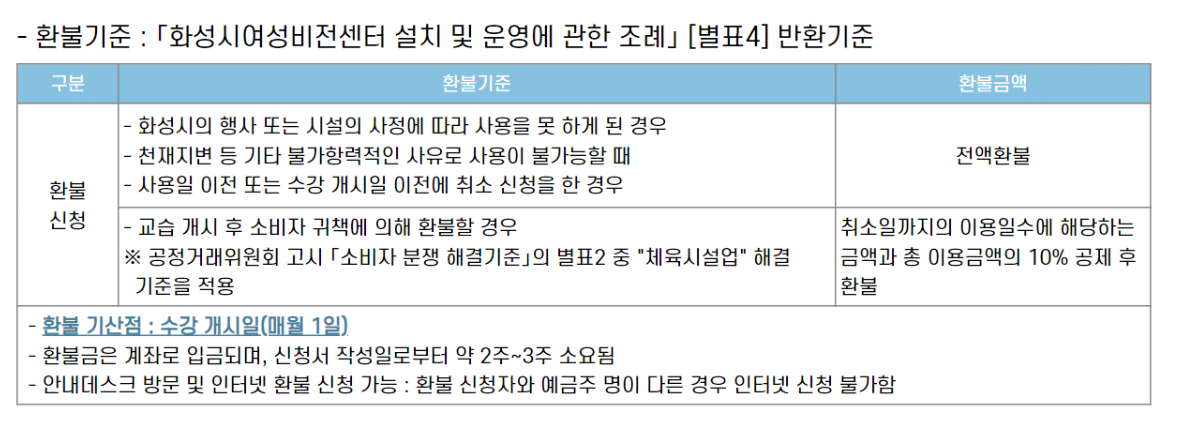 참고* 공정거래위원회 고시(소비자 분쟁 해결 기준)의 별표 2 “체육시설업” 해결 기준을 적용