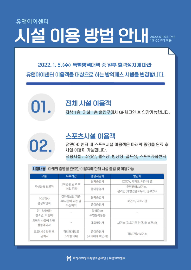[유앤아이센터] 방역 관련 시설이용방법 공지