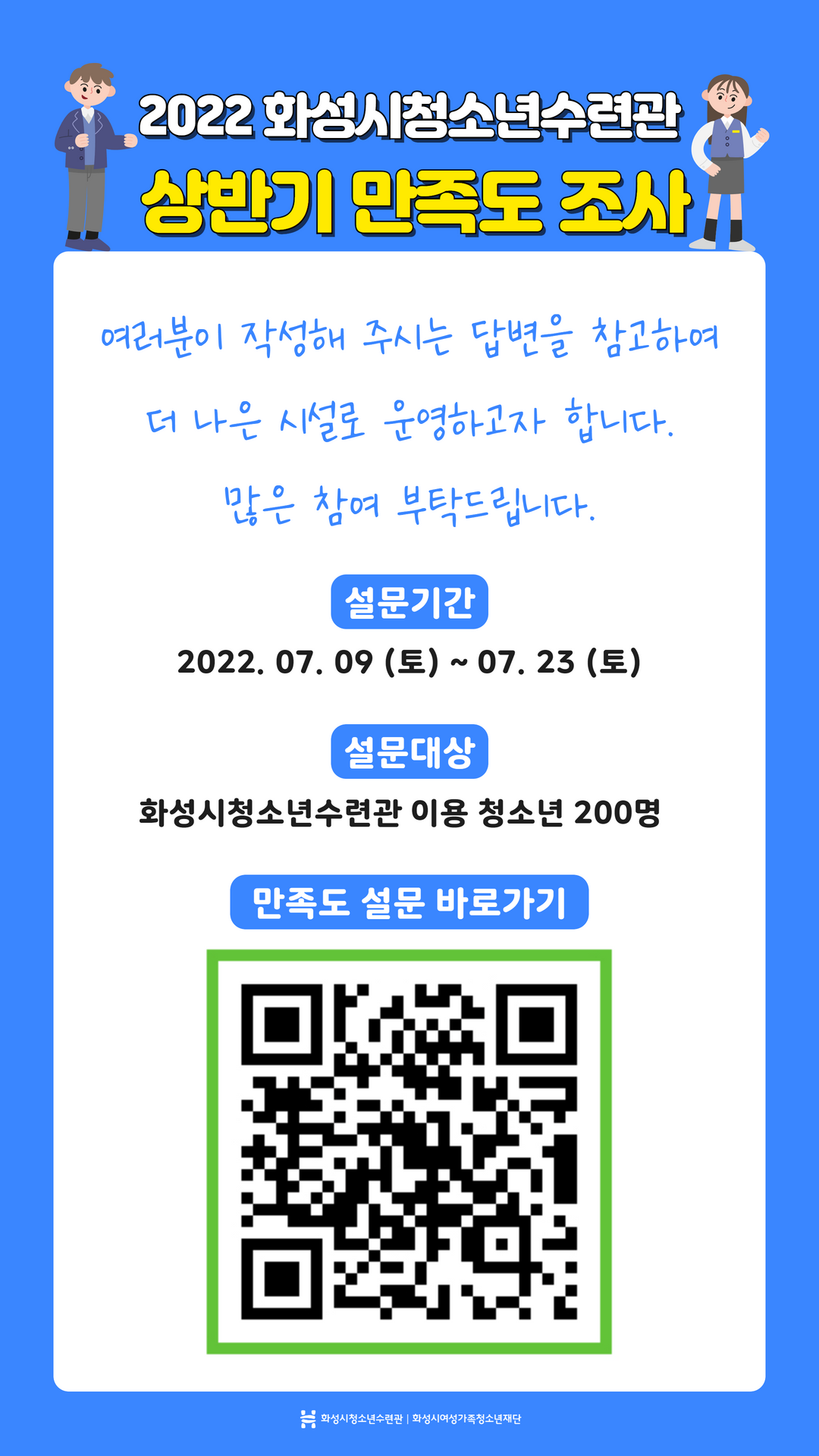제목 [화성시청소년수련관] 2022 화성시청소년수련관 상반기 만족도 조사 실시